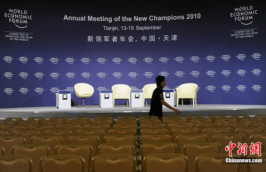 9月12日,2010夏季達(dá)沃斯各項籌備就緒,靜待明日開幕。近90個國家的超過1500名代表云集天津,將圍繞“推動可持續(xù)增長”這一主題展示各自真知灼見。中新社記者 劉震 攝
