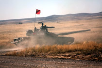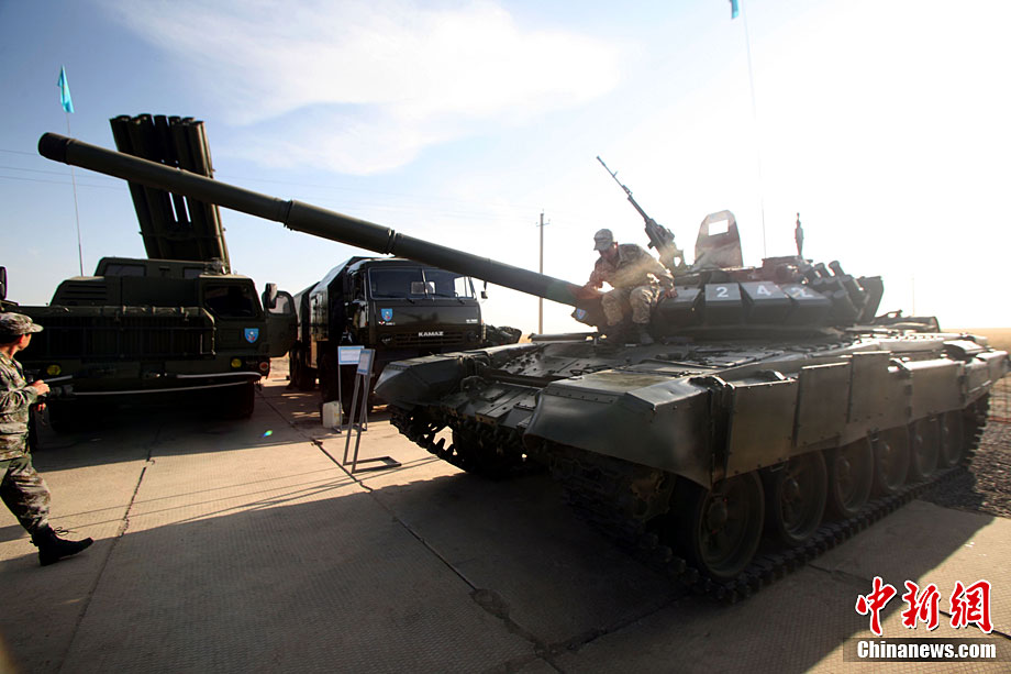 參加“和平使命-2010”上合組織聯(lián)合反恐軍事演習(xí)的中方參演裝備停放在哈薩克斯坦馬特布拉克訓(xùn)練場野戰(zhàn)兵營。圖為99式坦克。孫彥新 攝 圖片來源:新華網(wǎng)