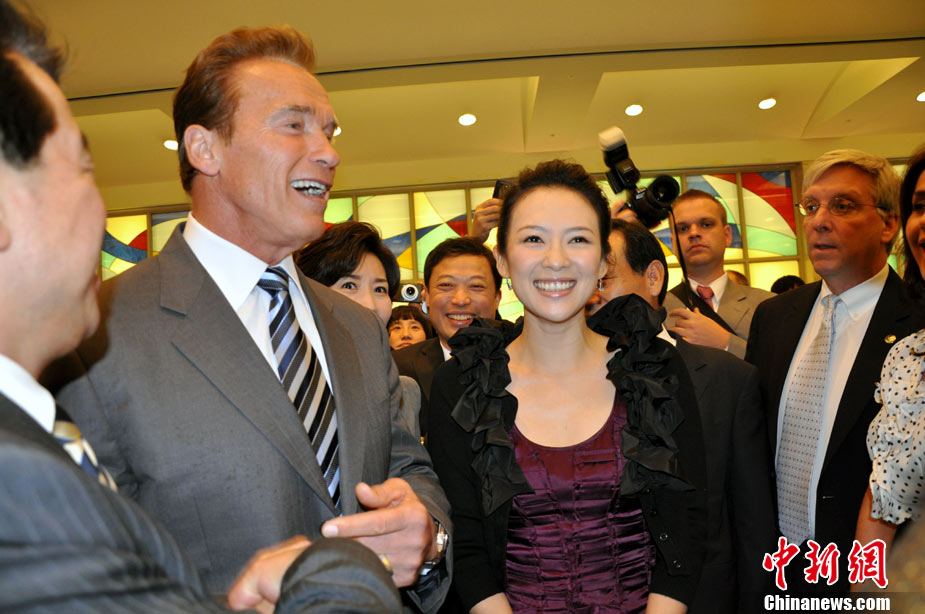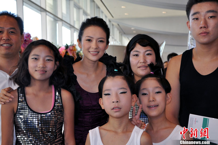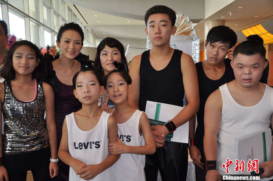 當?shù)貢r間9月15日上午,國際特奧會在首爾舉辦“2013年特殊奧林匹克冬季運動會”新聞發(fā)布會和簽字儀式,并宣布韓國平昌將成為本屆冬季特奧會的主辦地。特奧全球形象大使、國際影星章子怡出席發(fā)布會,身體力行關愛智障人士,為他們的表演和精神鼓勁加油。美國加州州長、前動作巨星阿諾德•施瓦辛格出席該活動,并與章子怡等共同見證特奧的啟動。圖為章子怡為智障兒童加油打氣。
