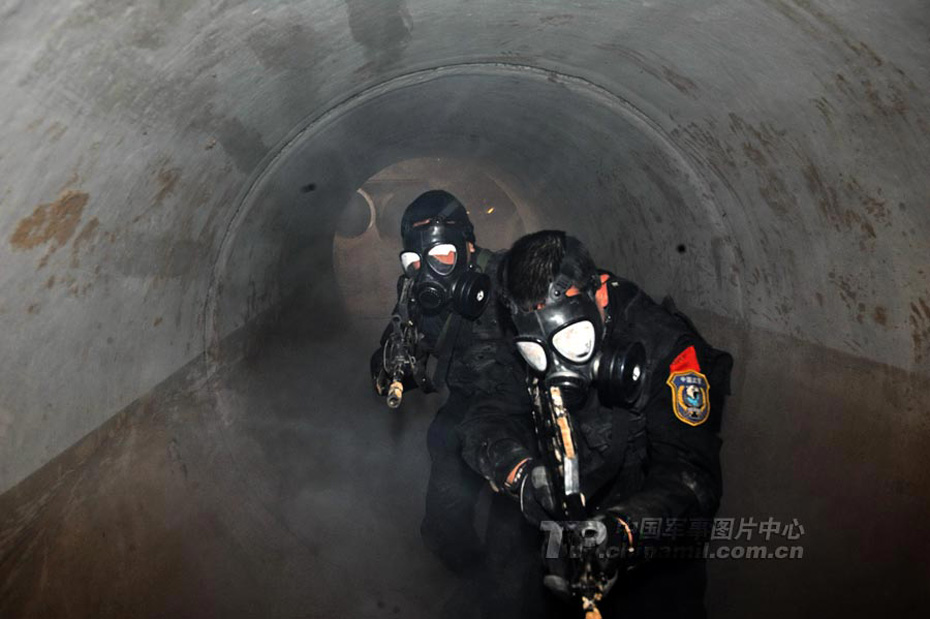 在有毒的地下管道中進行搜索解救人質(zhì)。馮凱旋 攝