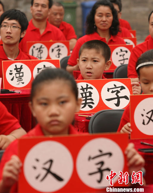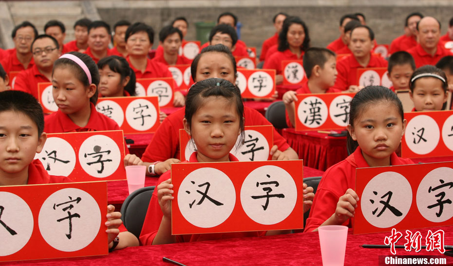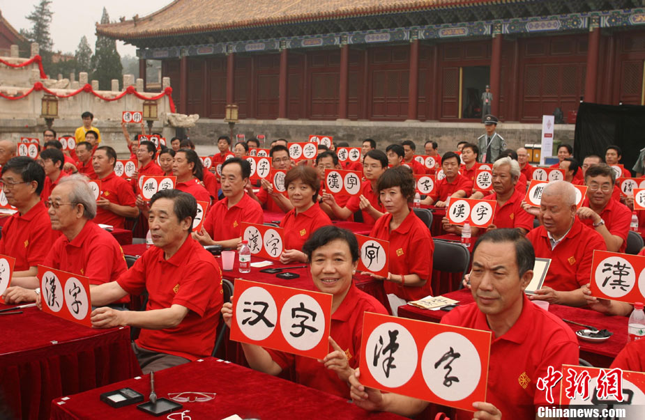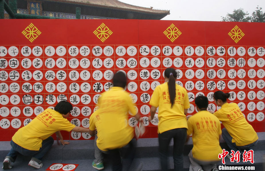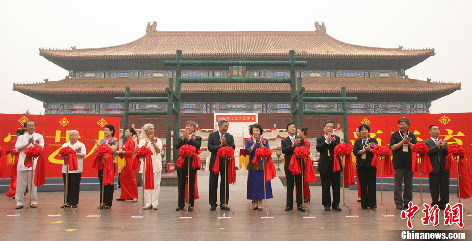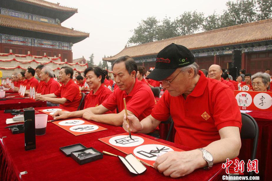 9月16日,北京兩百名書法愛好者在太廟前書寫各種字體的漢字,并共同完成“提筆、蘸墨、落筆、展卷”傳統(tǒng)程序。當(dāng)日,首屆“兩岸漢字藝術(shù)節(jié)”在北京太廟開幕。本次藝術(shù)節(jié)由中國(guó)藝術(shù)研究院、中華文化聯(lián)誼會(huì)、臺(tái)灣文化總會(huì)、河南省安陽(yáng)市政府聯(lián)合主辦,中國(guó)藝術(shù)研究推廣中心、臺(tái)灣中華新文化發(fā)展協(xié)會(huì)共同承辦。中新社發(fā) 蘇丹 攝
