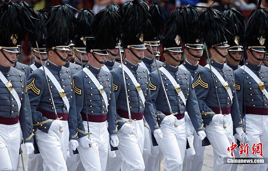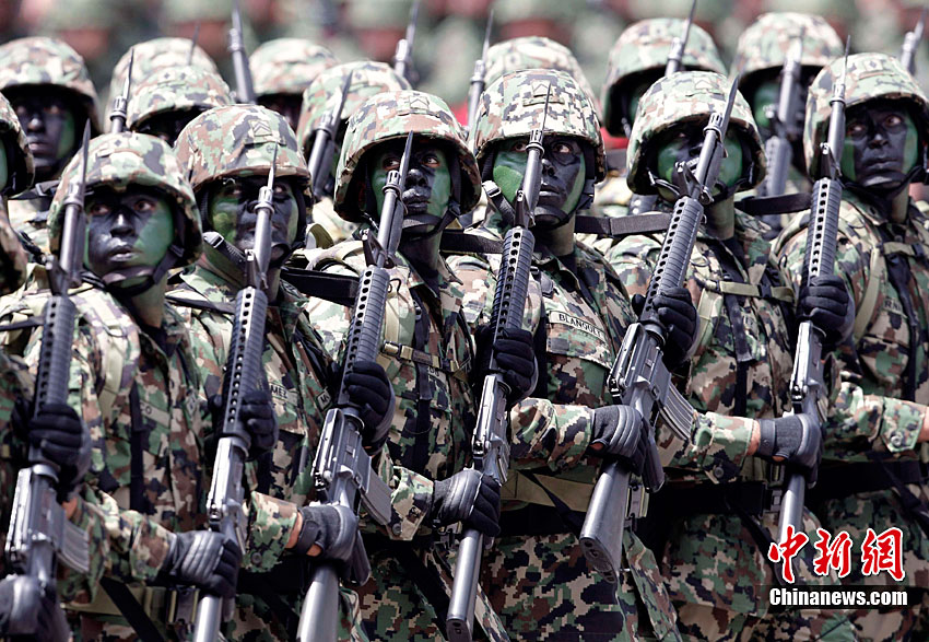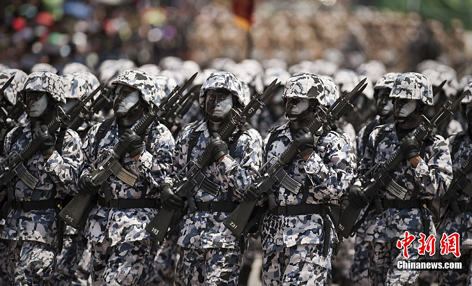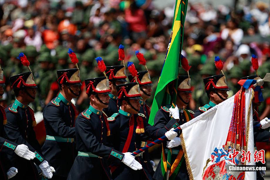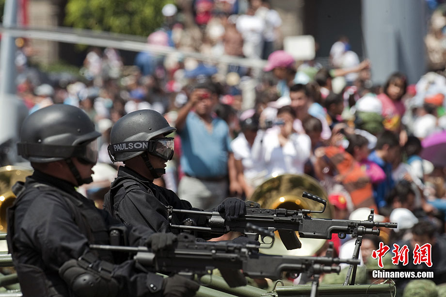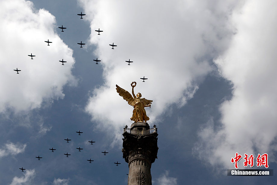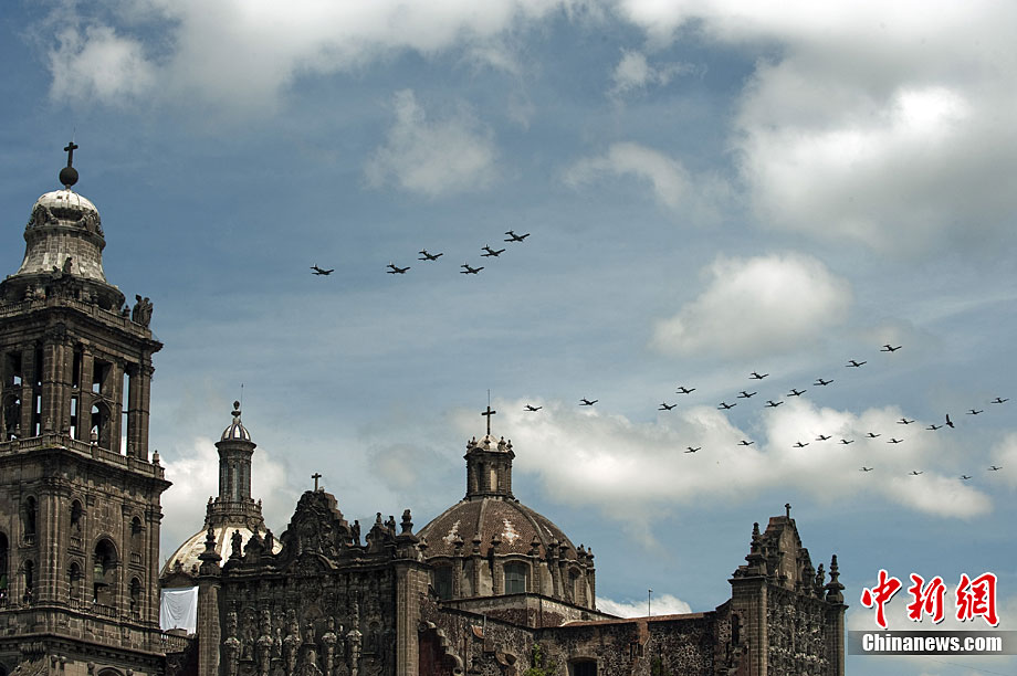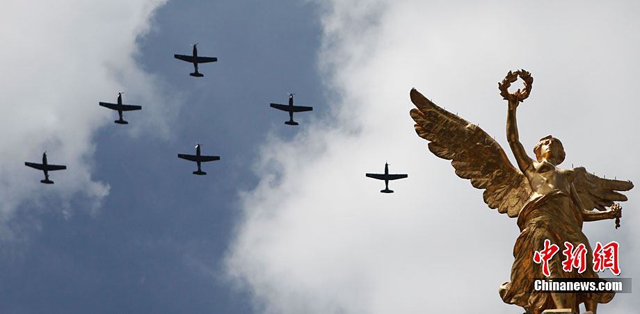 9月16日,在墨西哥首都墨西哥城,中國人民解放軍儀仗方隊參加墨西哥獨立200周年慶典閱兵。參加此次閱兵的中國儀仗隊由36人組成,其中34人編成方陣,最前方是1名旗手、5名護旗手,后隨1名陸軍指揮官,其身后列3隊,陸?崭1列、每列9人。這是解放軍儀仗部隊首次走出國門遠赴海外參加活動。