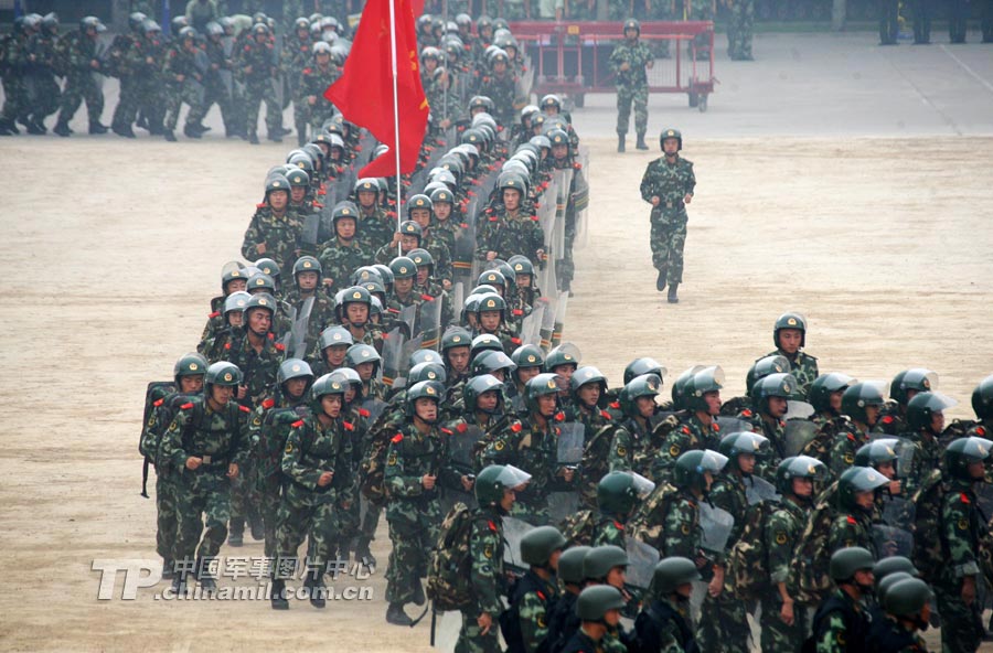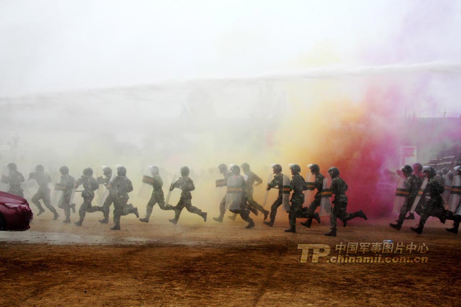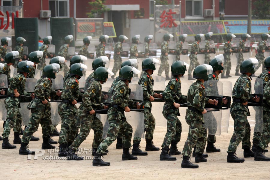 訓(xùn)練場內(nèi),面對各種突發(fā)情況,官兵手持盾牌、警棍,排成各種陣型,疾進(jìn)如風(fēng),徐推如林……