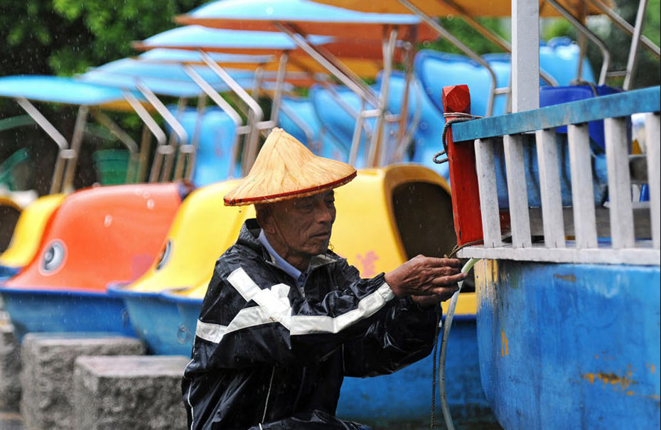 9月19日上午,臺(tái)北市民冒雨外出。當(dāng)日上午8時(shí)40分,超強(qiáng)臺(tái)風(fēng)“凡亞比”從臺(tái)灣花蓮縣豐濱鄉(xiāng)登陸,目前暴風(fēng)圈已籠罩臺(tái)灣各地,且風(fēng)雨在持續(xù)增強(qiáng)中。圖片來(lái)源:新華網(wǎng) 吳景騰 攝