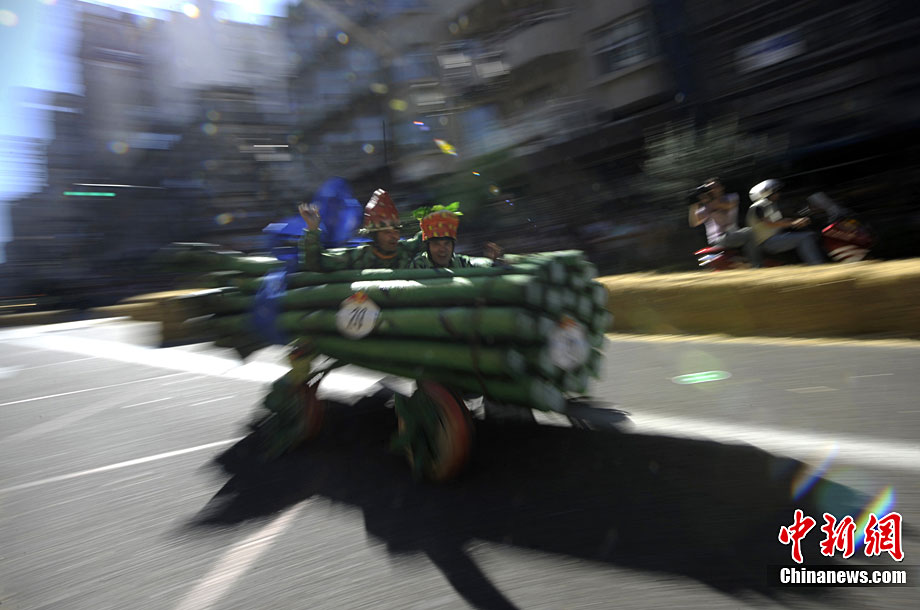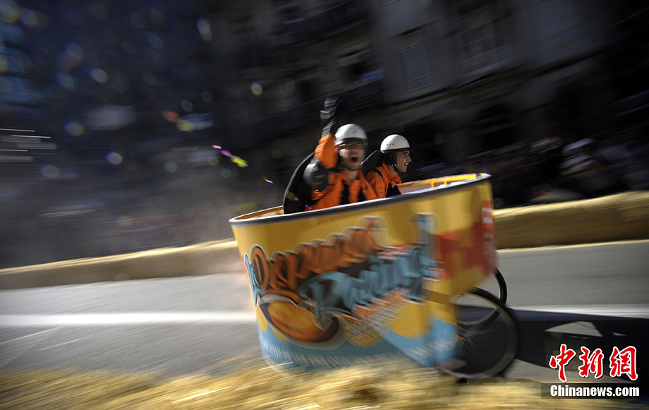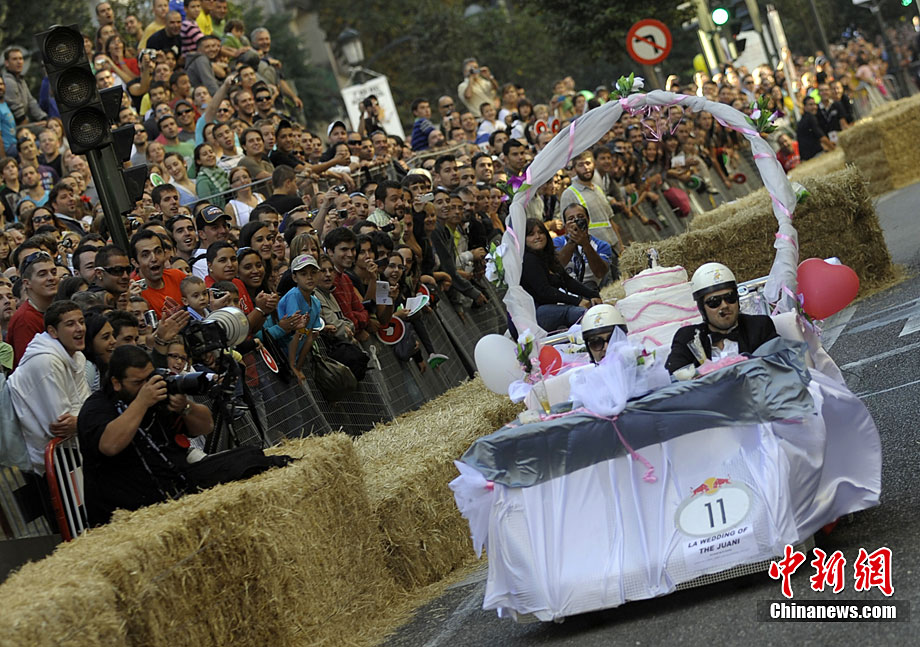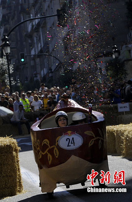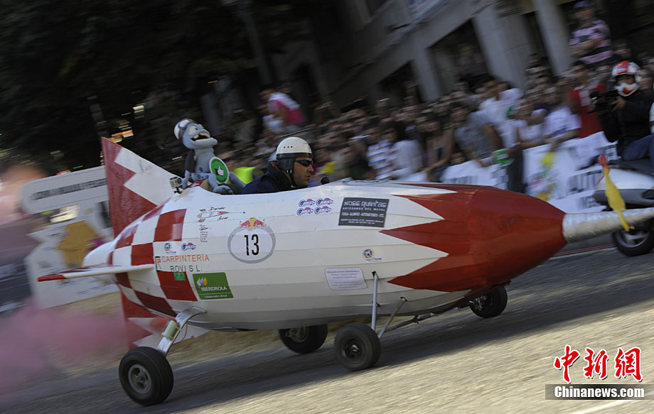 當(dāng)?shù)貢r(shí)間9月19日,西班牙西北部城市維哥迎來了一場別開場面的無動(dòng)力小車大賽。參賽選手各自設(shè)計(jì)制作的參賽車輛,迎得了人們的掌聲。