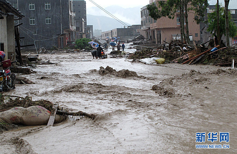 據(jù)廣東省防總消息,截至21日23時(shí),“凡亞比”造成廣東高州市、信宜市、陽(yáng)春市三市共死亡13人,失蹤33人。圖為暴雨引發(fā)山洪災(zāi)害。中新社發(fā) 聞達(dá) 攝