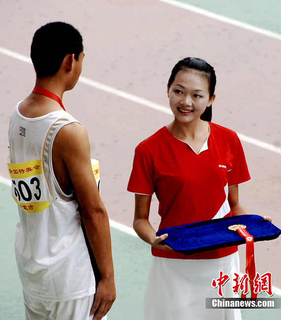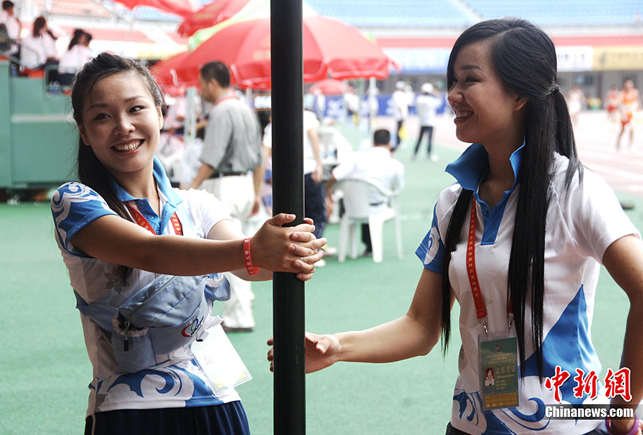 9月19日至25日,中國第五屆特奧會(huì)在福州舉行,賽場外美麗的志愿者成為一道亮麗風(fēng)景線。王東明 攝
