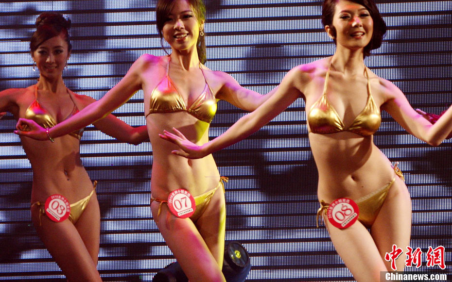 9月24日晚,2010亞洲小姐競選中國內(nèi)地網(wǎng)絡(luò)賽區(qū)總決賽在北京舉行,15位佳麗“火辣、性感”登場角逐,經(jīng)過泳裝、云錦晚裝秀、才藝展示以及現(xiàn)場知識問答等環(huán)節(jié),最后選自西南網(wǎng)絡(luò)賽區(qū)的5號王欣獲得冠軍、華北網(wǎng)絡(luò)賽區(qū)3號劉曉智獲得亞軍、華北網(wǎng)絡(luò)賽區(qū)10號何婭萌獲得季軍。圖為參賽佳麗展示風(fēng)采. 中新社發(fā) 錢興強 攝