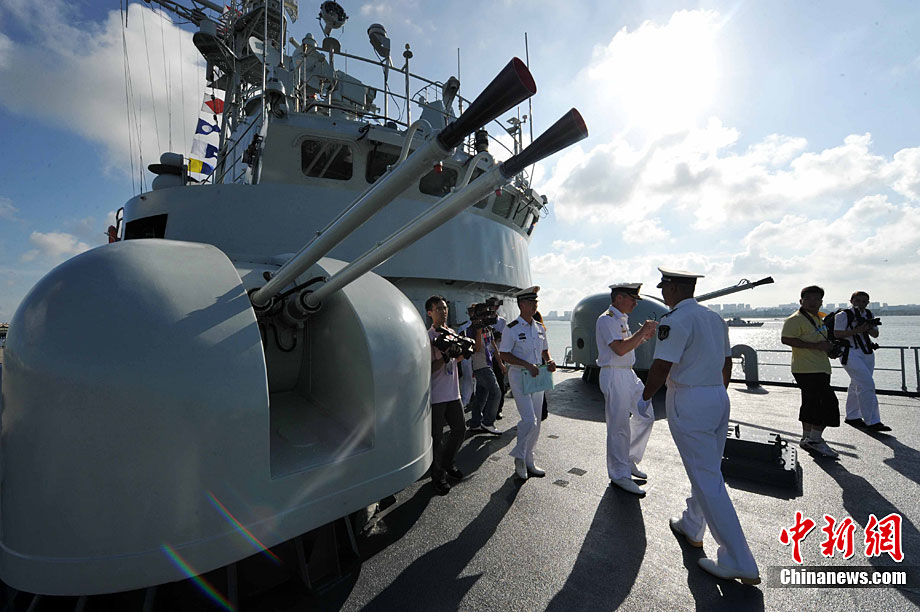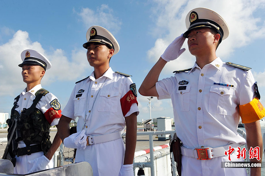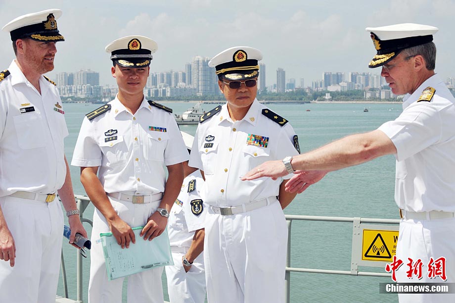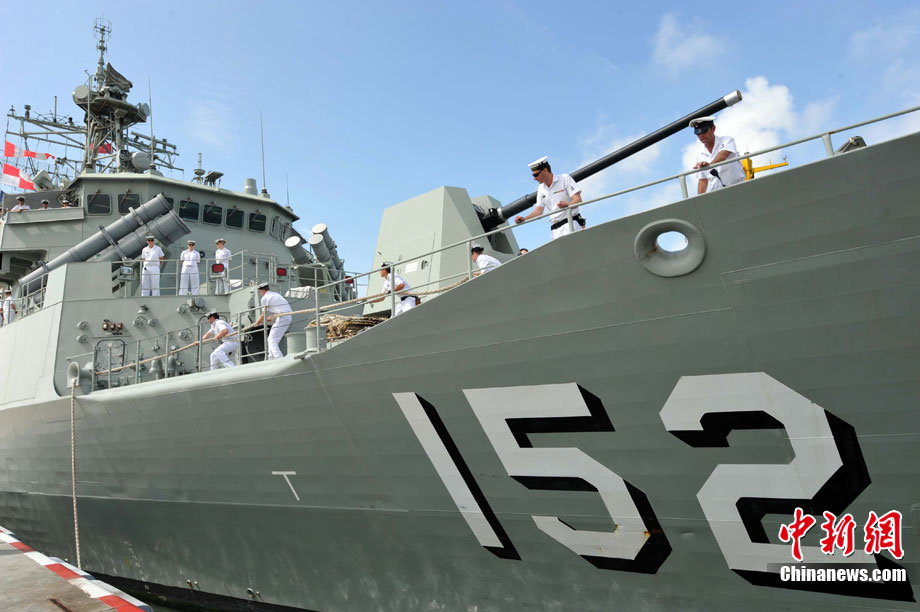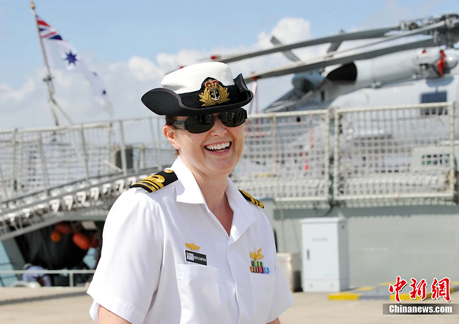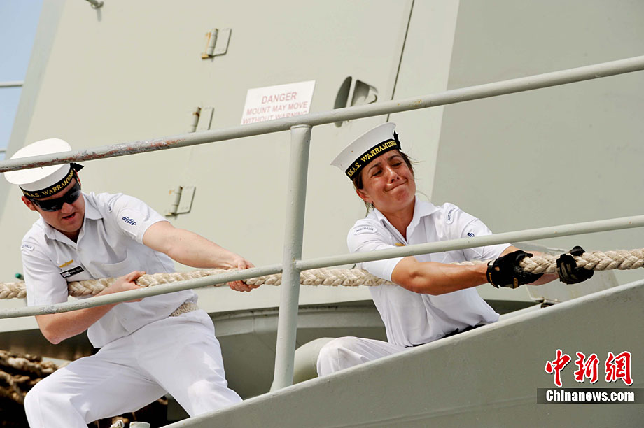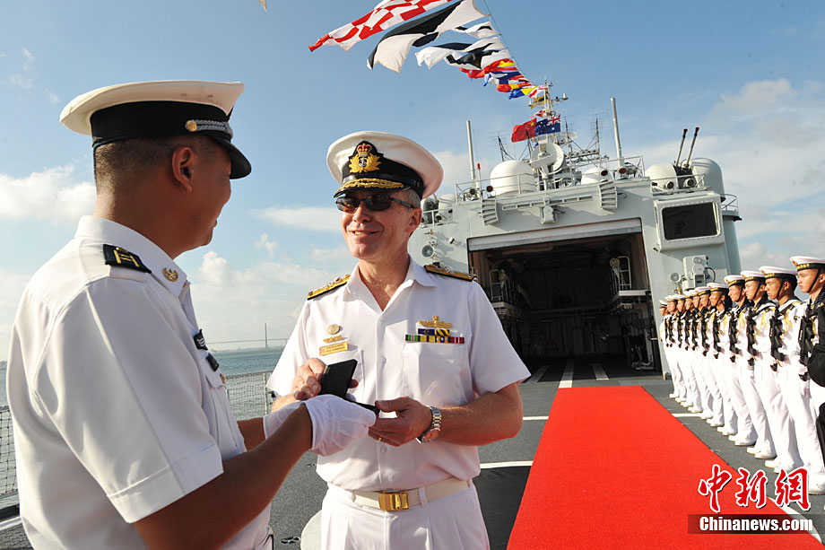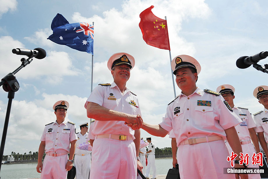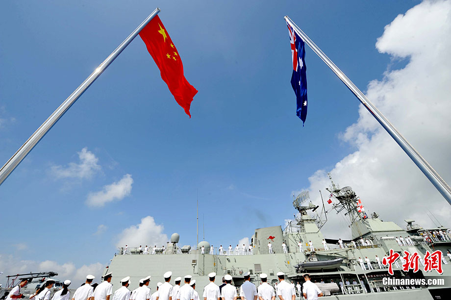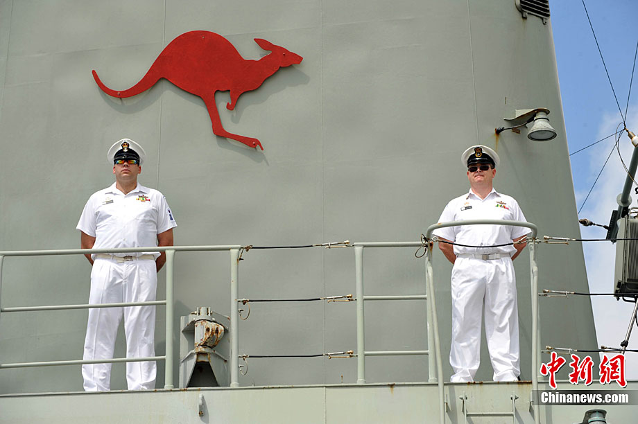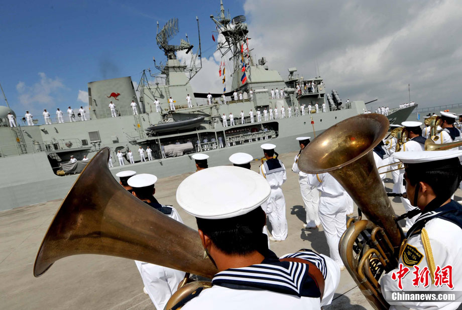 9月26日,應中國人民解放軍海軍邀請,澳大利亞海軍艦隊司令吉爾摩少將率海軍“瓦拉蒙加”號護衛(wèi)艦抵達湛江某軍港進行友好訪問,南海艦隊舉行了隆重的歡迎儀式。中新社記者 陳文 攝