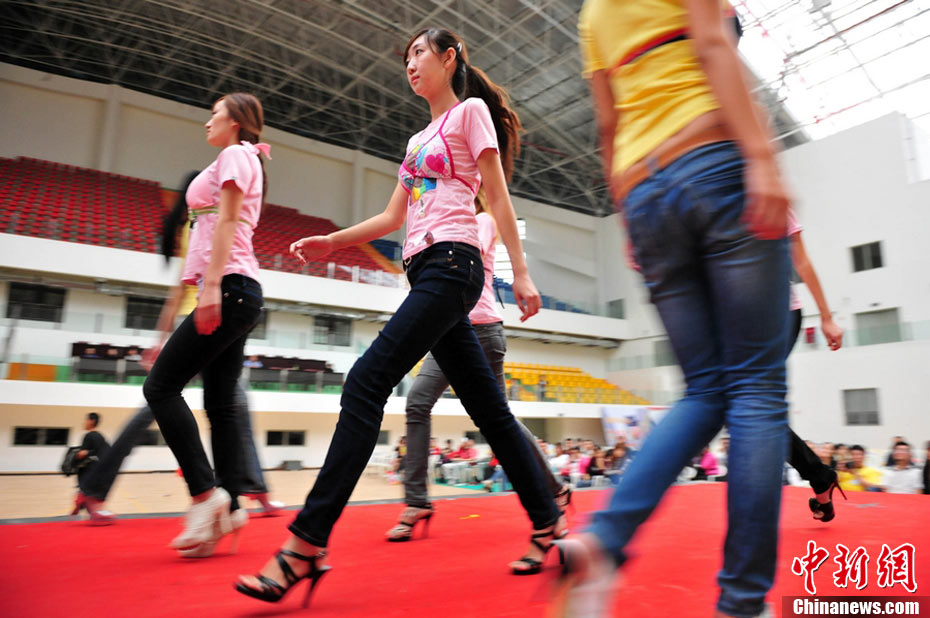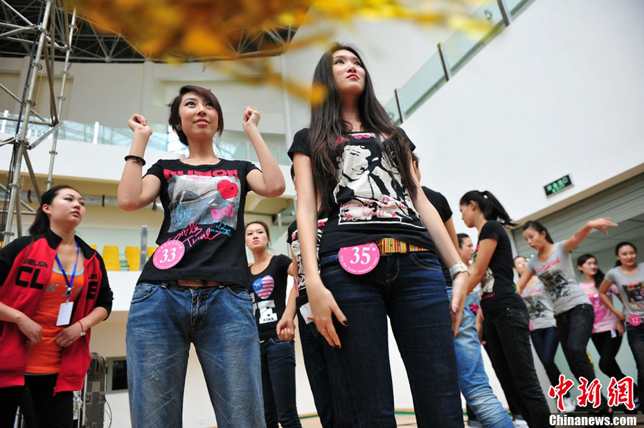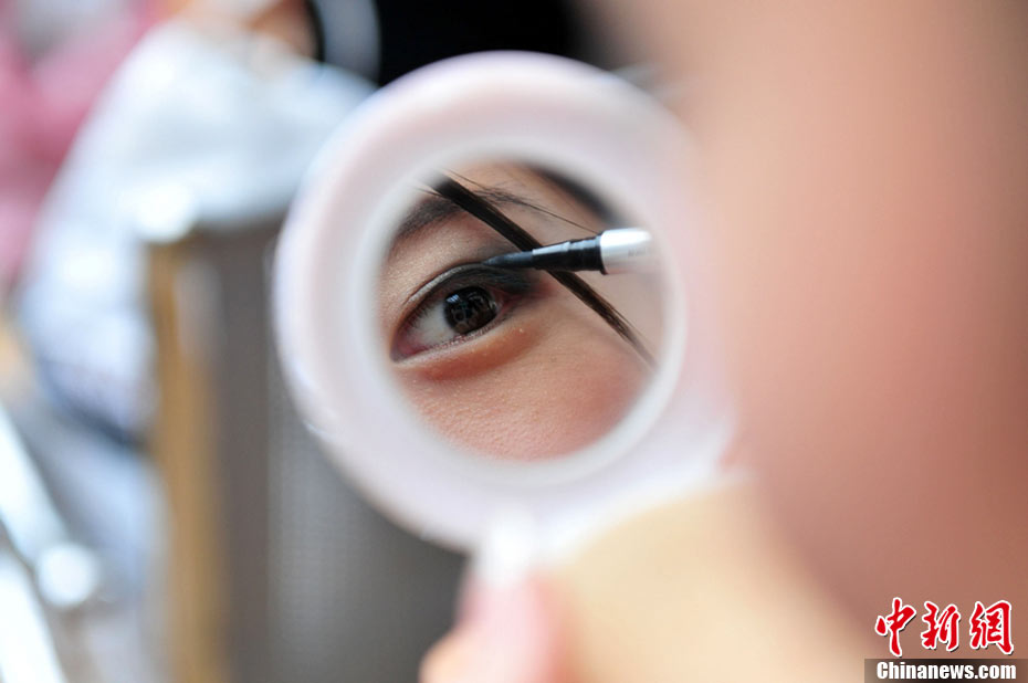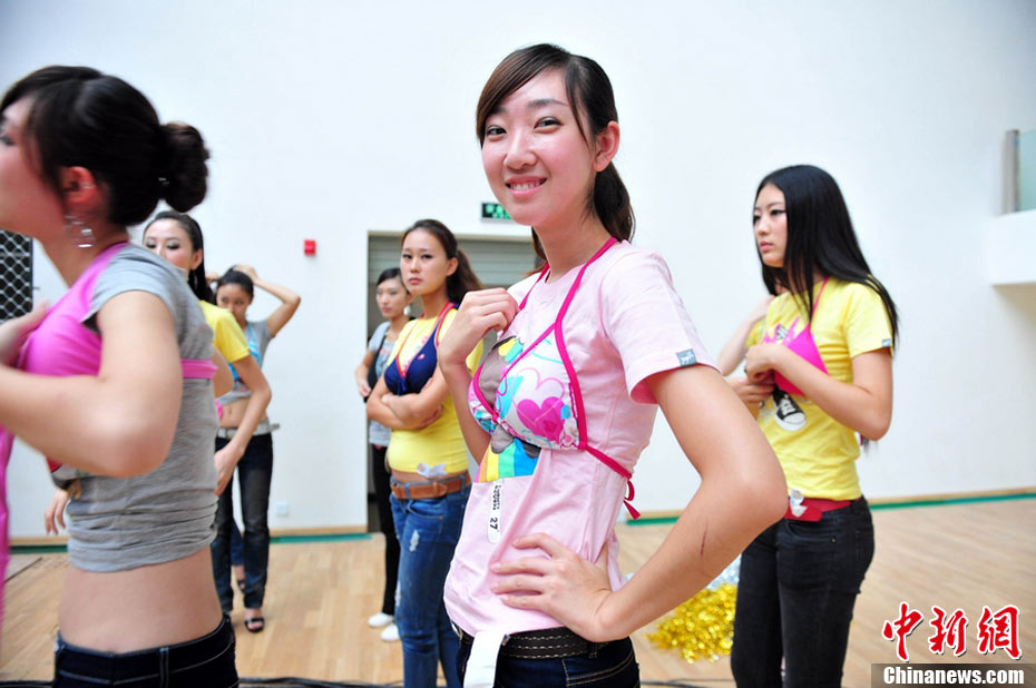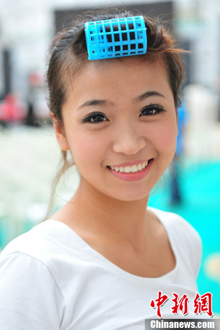 9月25日,40名佳麗選手云集四川省劍閣縣體育館,為即將到來(lái)的2010中華旅游小姐大賽中國(guó)區(qū)總決賽晚會(huì)進(jìn)行彩排。為了一個(gè)小時(shí)的時(shí)尚秀,選手們需要參加兩天共10幾個(gè)小時(shí)的高強(qiáng)度彩排,大部分的時(shí)間她們?cè)凇澳V浮钡闹笇?dǎo)下站立、走臺(tái)、或者是緊張的換衣。然而,猶如T臺(tái)上的絢麗一樣,她們的后臺(tái)同樣精彩。中新社記者 李學(xué)仕 攝