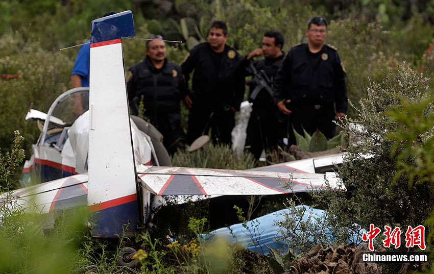 9月25日,墨西哥普埃布拉州的特卡馬查爾科,警察清理墜機(jī)現(xiàn)場(chǎng)。當(dāng)天,墨西哥一架小型飛機(jī)在特卡馬查爾科墜毀,飛機(jī)上的兩名商人遇難。