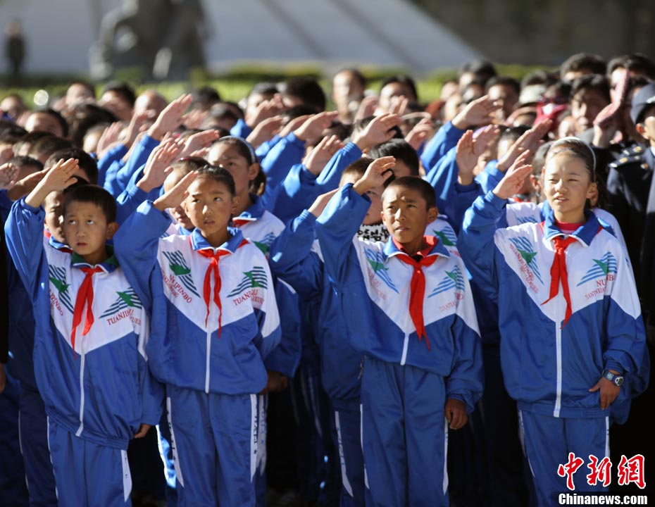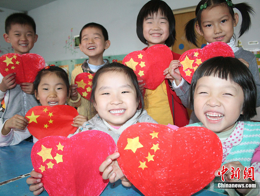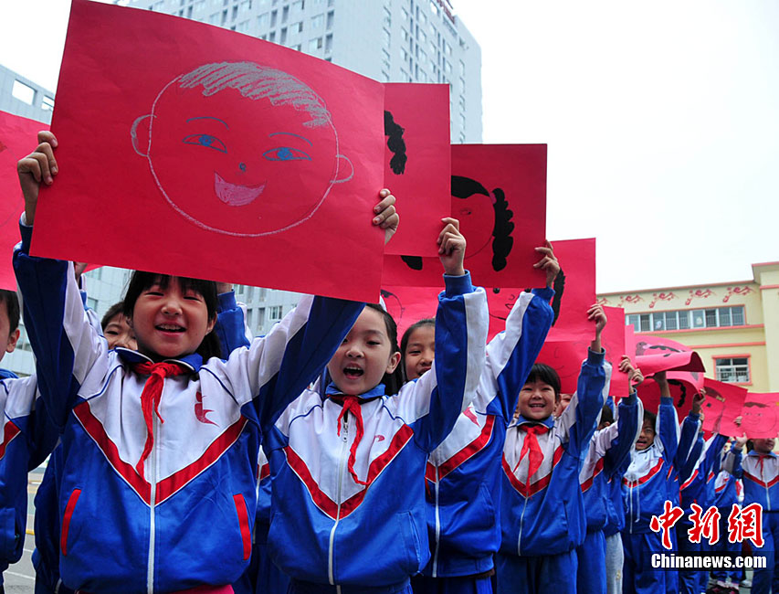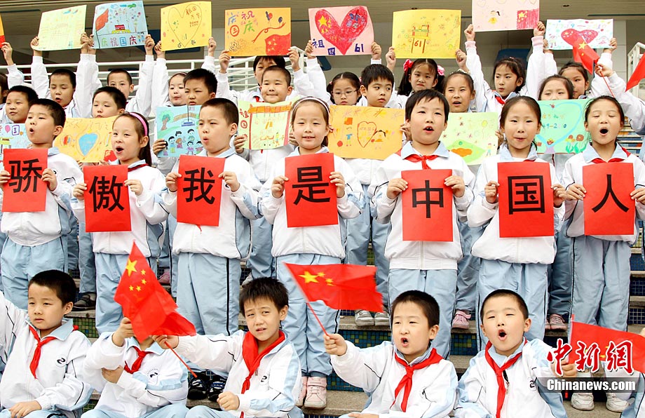 9月27日,一場(chǎng)以“我驕傲,我是中國(guó)人”為主題的國(guó)慶61周年誦讀繪畫(huà)賽活動(dòng)在蘇州市一所小學(xué)校舉行,該校百余名一、二年級(jí)學(xué)生以集體誦讀和繪畫(huà)展示等形式,表達(dá)對(duì)偉大的祖國(guó)贊美與衷心祝福。王建中 攝 圖片來(lái)源:cnsphoto