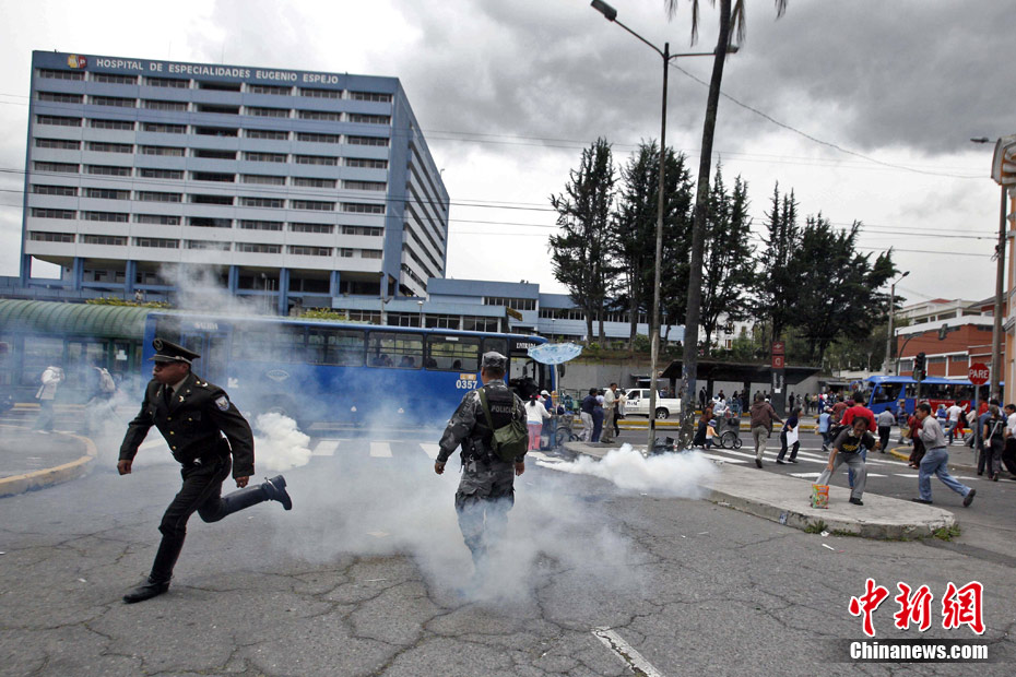 厄瓜多爾當(dāng)?shù)貢r(shí)間9月30日爆發(fā)嚴(yán)重騷亂,目前,厄瓜多爾局勢十分緊張,抗議者一度控制首都基多的國際機(jī)場,并試圖攻占國會大廈。在厄瓜多爾的其他地方也出現(xiàn)嚴(yán)重騷亂,多個(gè)城市間的交通被切斷。圖為在厄瓜多爾首都基多街頭,一名警官參加示威游行。