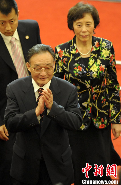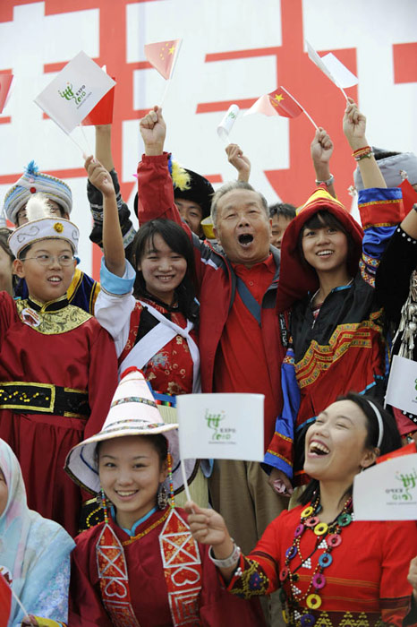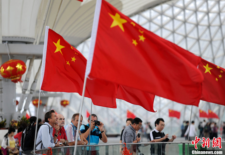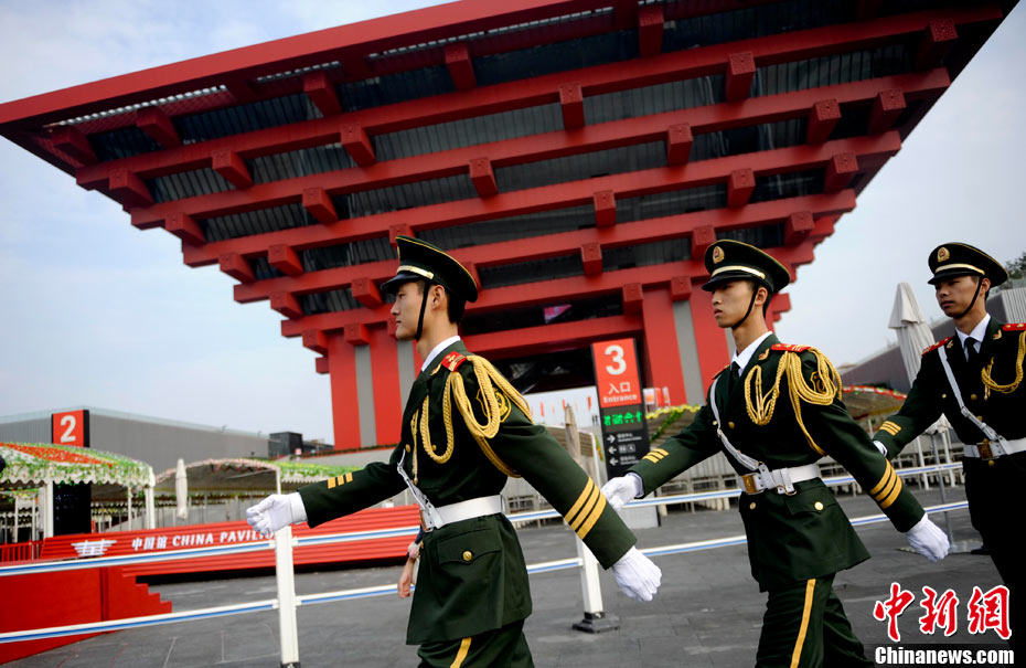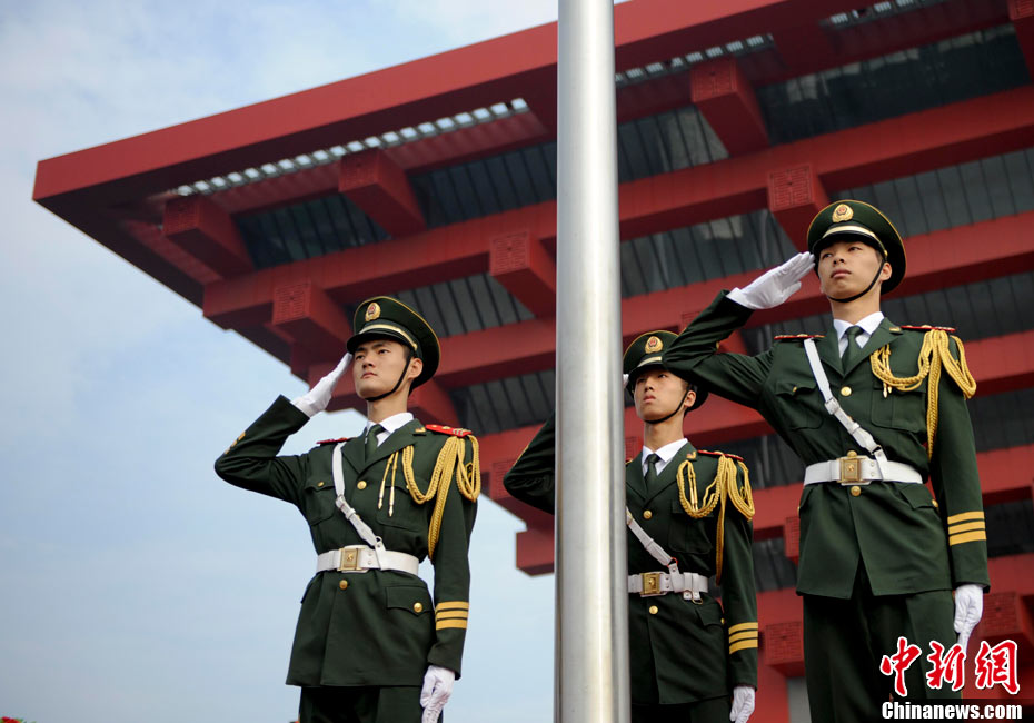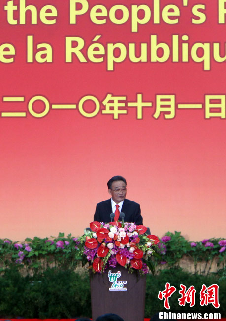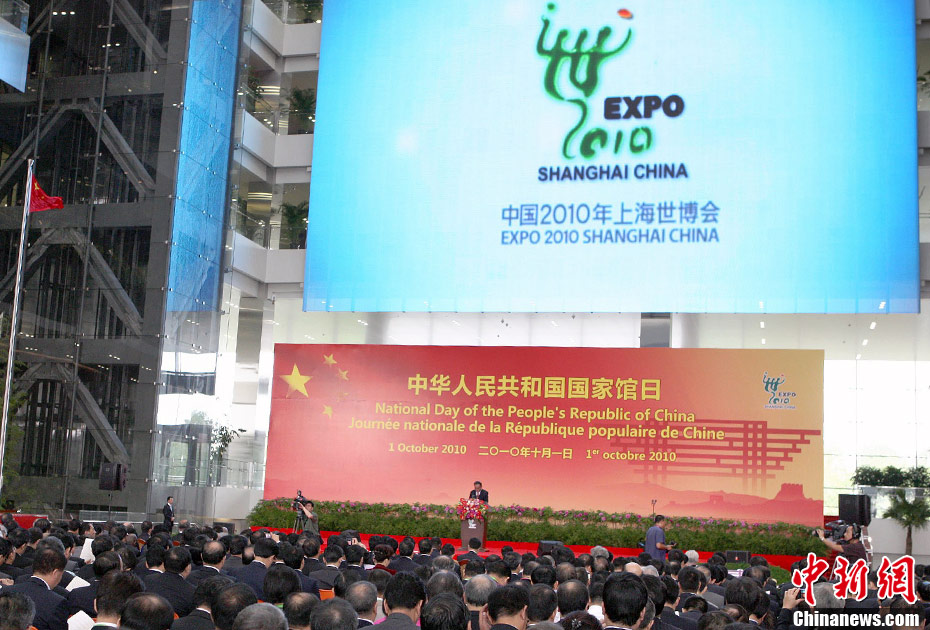 10月1日上午,上海世博會(huì)“中國國家館日”儀式在世博中心中央大廳舉行,全國人大常委會(huì)委員長吳邦國出席并致辭。中新社記者 任晨鳴 攝