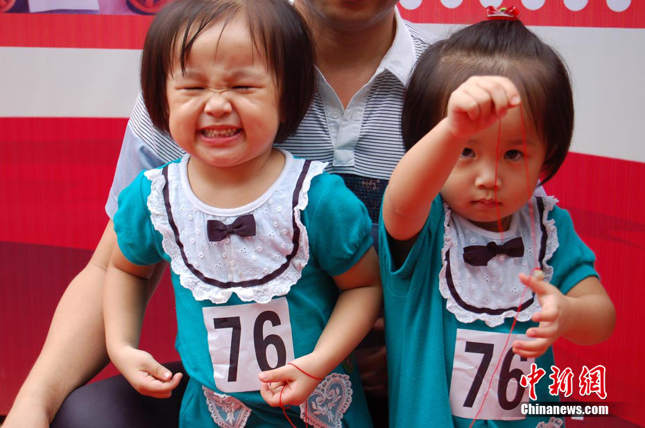 10月1日,國慶長假第一日,70多對雙胞胎、三胞胎歡聚廣西南寧市人民公園,參加“南寧首屆雙胞胎歡樂節(jié)”,比拼相似度與默契程度。參加活動(dòng)的雙胞胎有長得酷似李宇春、周迅、大小S等明星,引來眾多好奇目光。中新社記者 劉萬強(qiáng) 攝