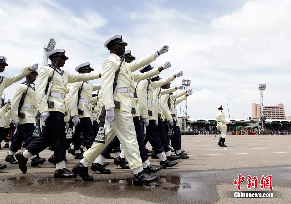 10月1日是尼日利亞獨立50周年的日子,當(dāng)天在首都阿布賈的雄鷹廣場舉行了盛大的閱兵式。舉行慶;顒赢(dāng)天,尼日利亞遭到恐怖襲擊,2枚炸彈在司法部外面幾乎同時引爆,目前已知至少有14人喪生,21人受傷,但是閱兵式還是順利地完成了。