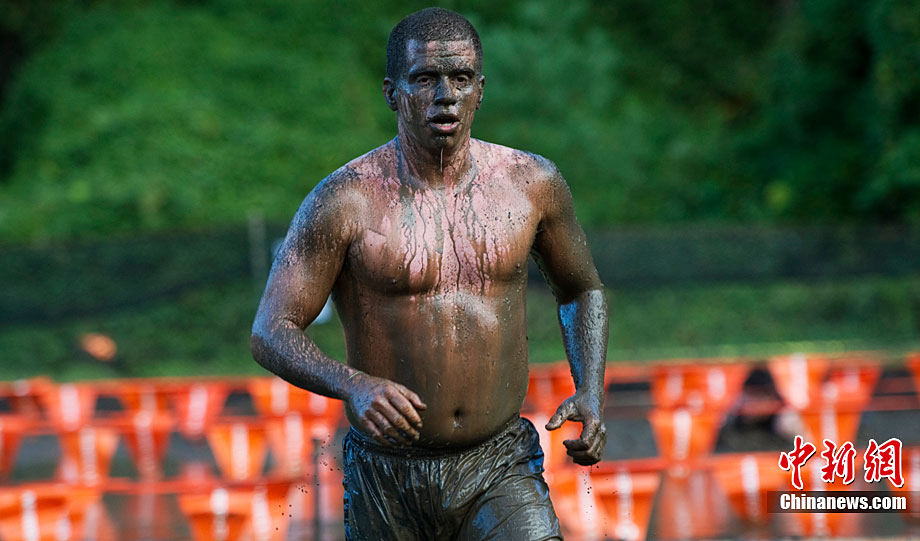 美國紐約舉辦趣味泥地賽跑