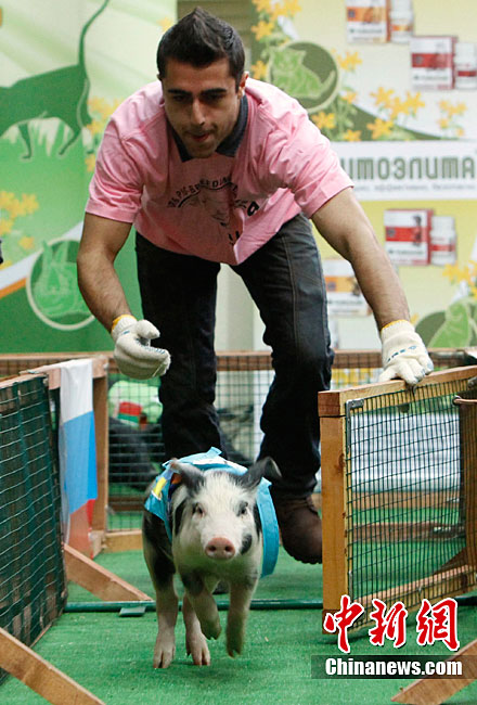 當(dāng)?shù)貢r間10月2日,俄羅斯莫斯科舉行了一場別開聲面的豬仔賽跑比賽,這是俄羅斯“金秋-2010”農(nóng)業(yè)成就展上的一部分。