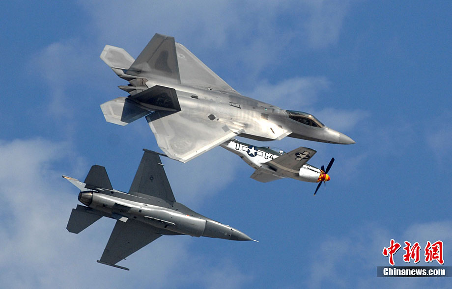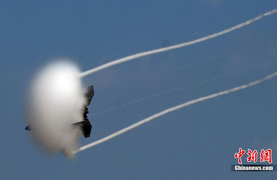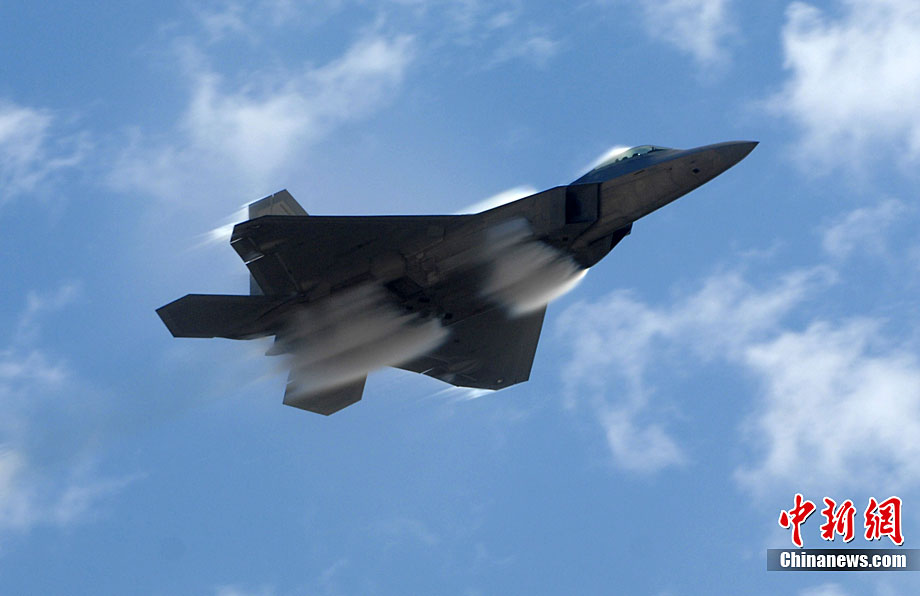 當(dāng)?shù)貢r(shí)間10月3日,美國著名的密拉瑪航空展在加州密拉瑪海軍陸戰(zhàn)隊(duì)航空基地舉行。三天的航空展示和飛行表演吸引了近70萬人次參觀。圖為美軍最先進(jìn)的F-22猛禽戰(zhàn)機(jī)空中英姿。中新社發(fā) 張煒 攝