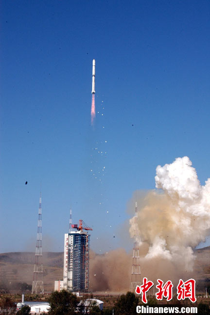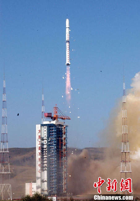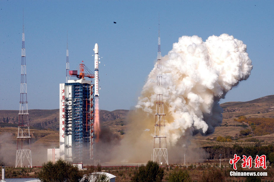 北京時(shí)間10月6日8時(shí)49分,中國在太原衛(wèi)星發(fā)射中心用“長(zhǎng)征四號(hào)乙”運(yùn)載火箭一箭雙星,成功將“實(shí)踐六號(hào)”04組兩顆空間環(huán)境探測(cè)衛(wèi)星送入太空。中新社發(fā) 尚春雅 攝