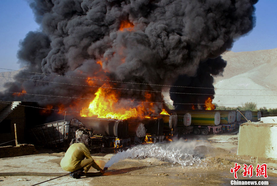 武裝分子在巴基斯坦燒毀20多輛北約油罐車