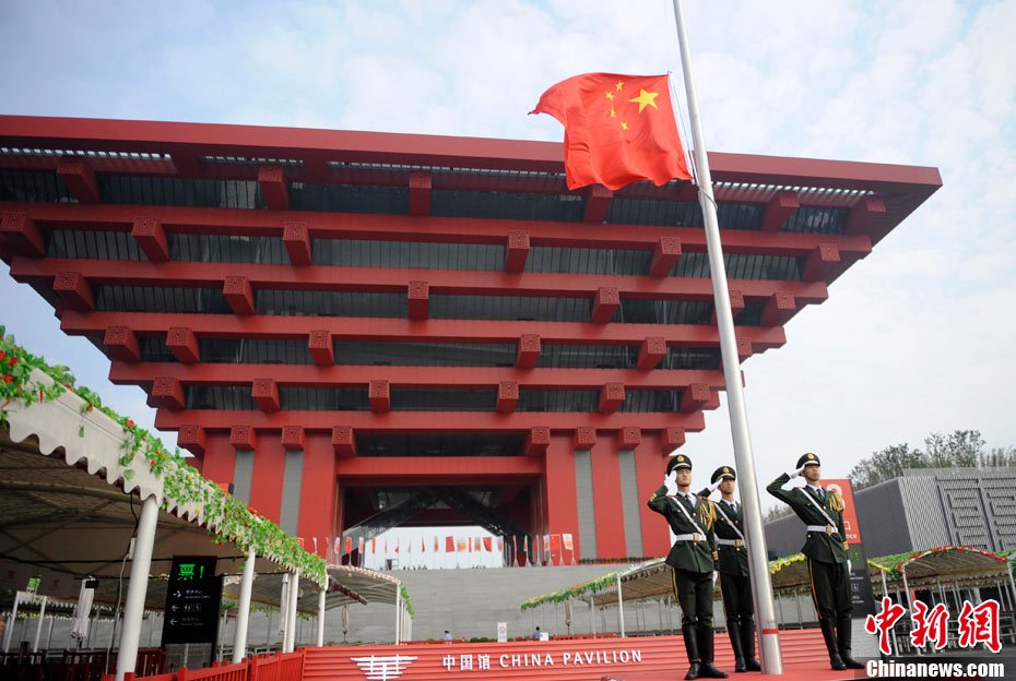10月1日,上海世博會(huì)中國國家館日升旗儀式舉行。