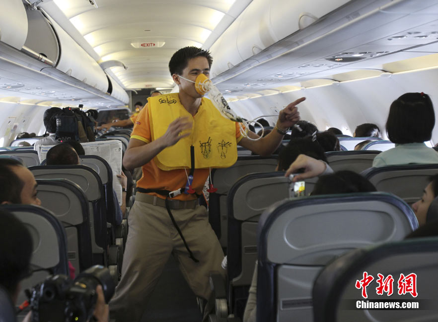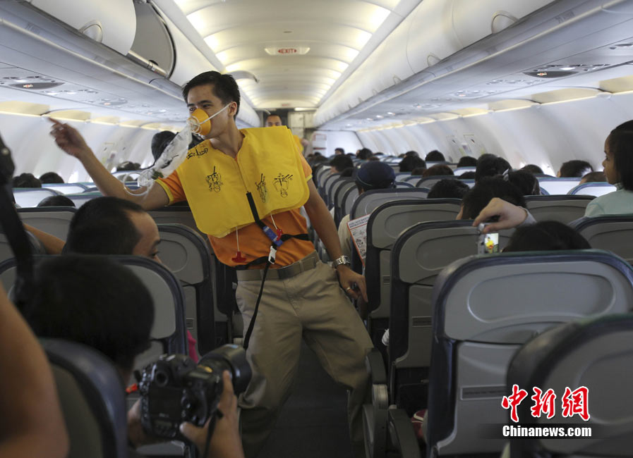 菲律賓空乘飛機(jī)上跳舞演示航空安全