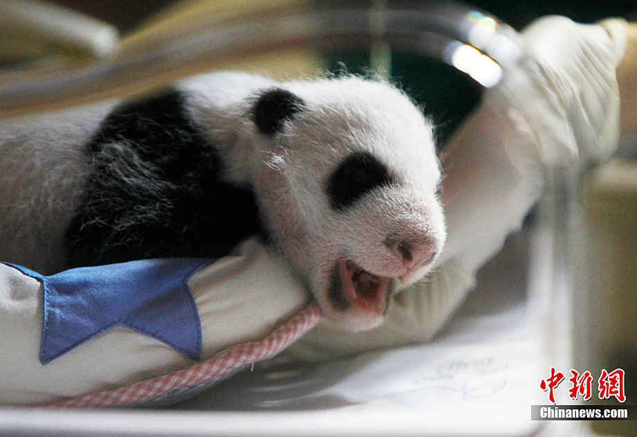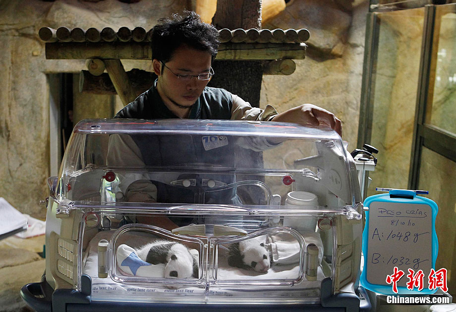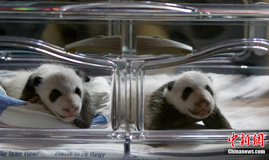 當(dāng)?shù)貢r(shí)間10月8日,西班牙馬德里動物園出生的兩只人工受精的大熊貓幼崽第一次向媒體亮相。這對雙胞胎均為雄性,9月7日出生時(shí)他們的體重只有5盎司(141.5克)。經(jīng)過不斷的護(hù)理,它們現(xiàn)在體重已超過1公斤,并可以向媒體亮相了。
