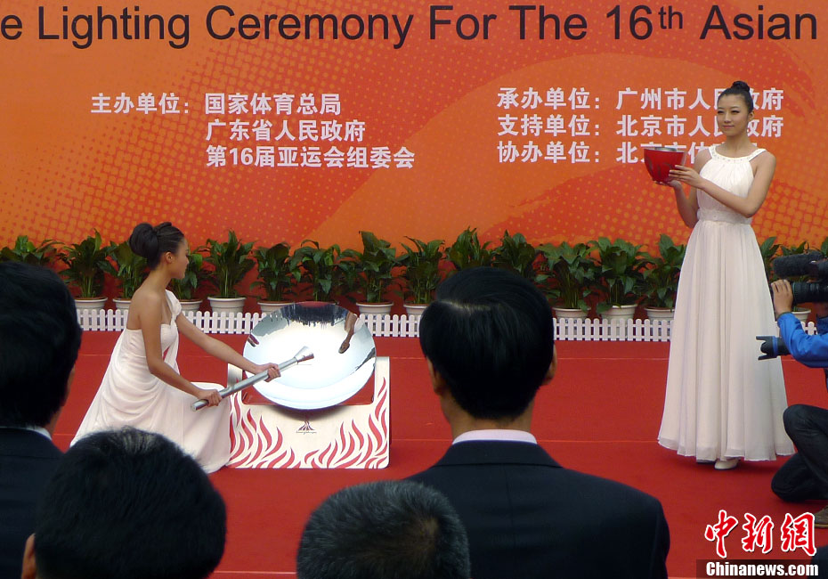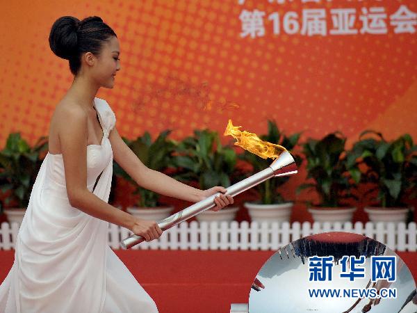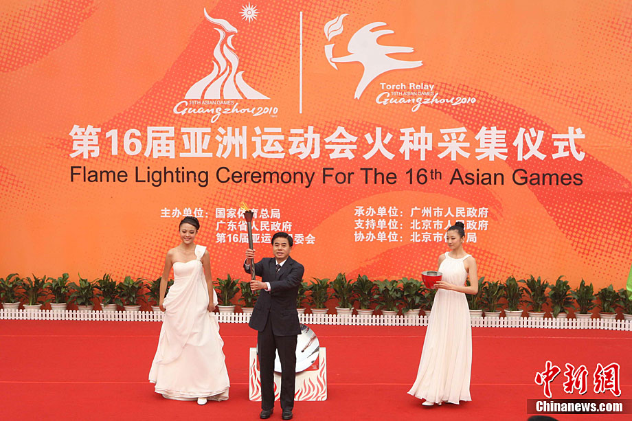 北京時(shí)間10月9日上午10時(shí)26分,2010年廣州亞運(yùn)會圣火在有“天下第一雄關(guān)”的北京居庸關(guān)長城北關(guān)烽火臺成功點(diǎn)燃。中新社記者 王歡 攝