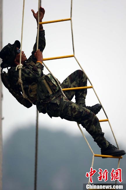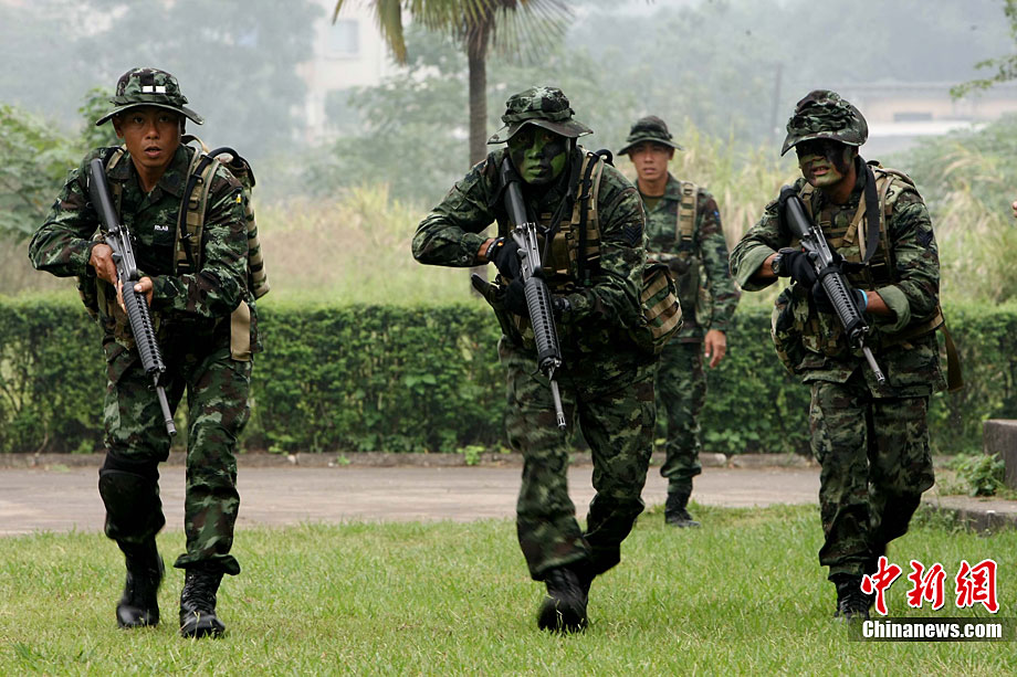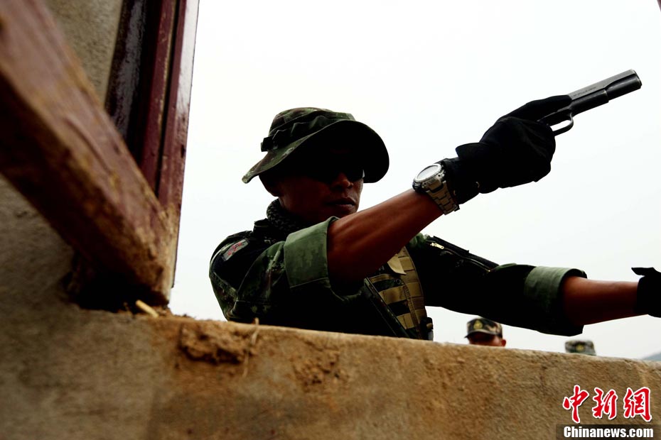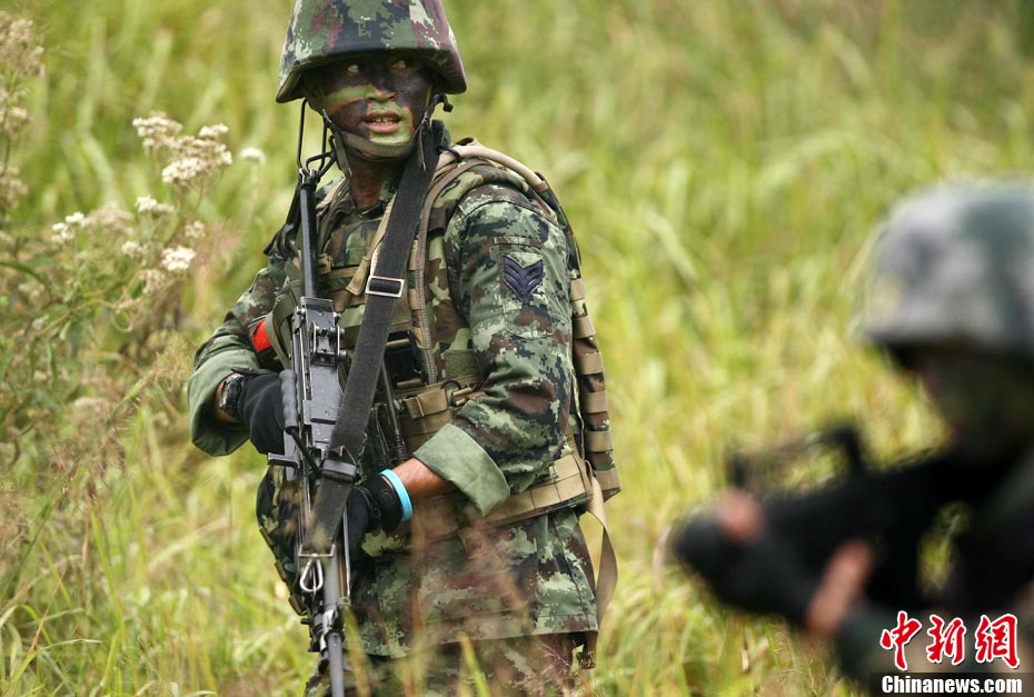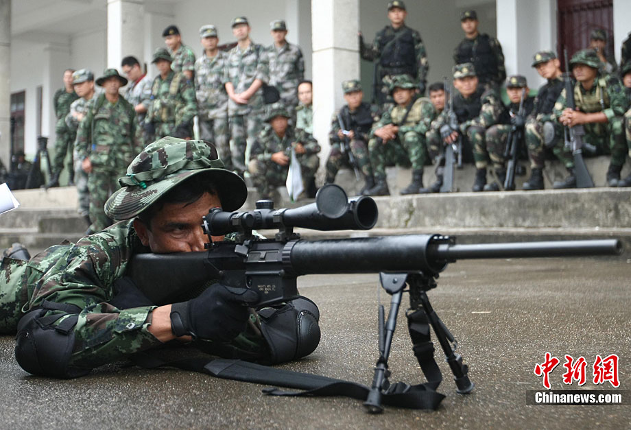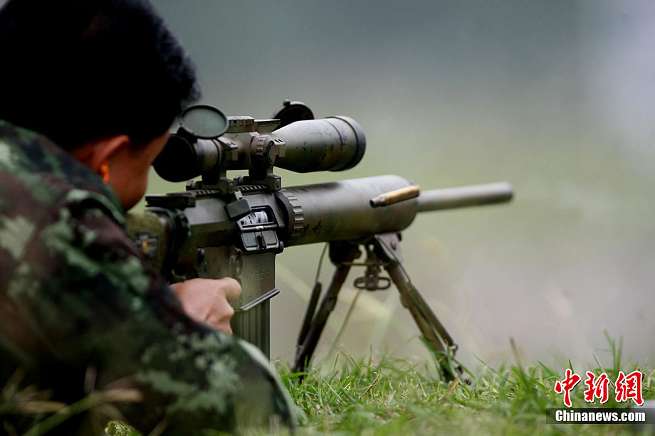 “突擊-2010”中泰陸軍特種部隊反恐聯(lián)合訓(xùn)練10月6日至20日在廣西壯族自治區(qū)桂林進(jìn)行。圖為身著偽裝服的狙擊手。中新社記者 杜洋 攝