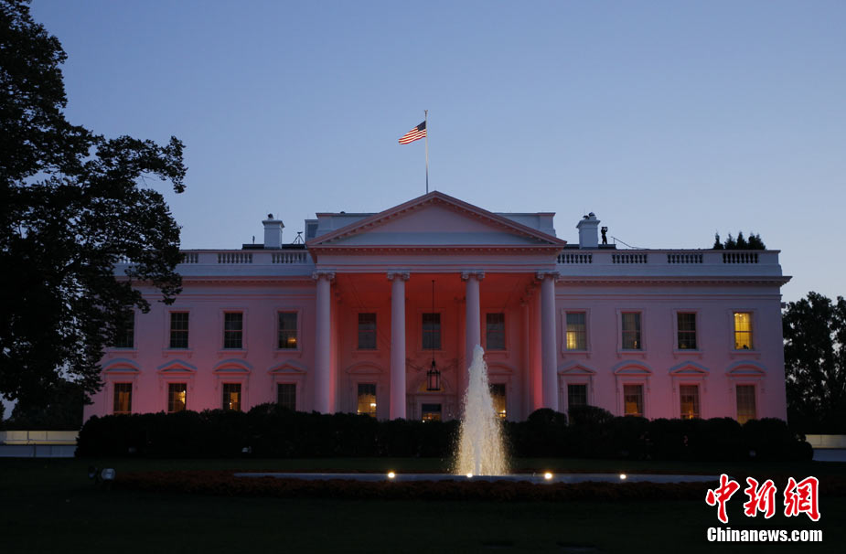 粉紅燈光照耀白宮 呼吁關(guān)注乳腺癌