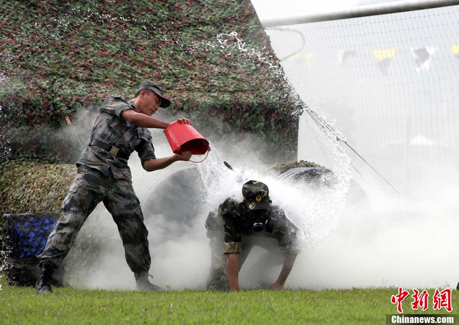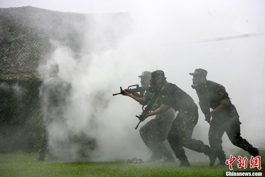 10月16日,中國(guó)人民解放軍駐港部隊(duì)特種兵在香港昂船洲海軍基地進(jìn)行“獵人戰(zhàn)斗”演練,展示過(guò)硬的搏擊功夫。當(dāng)天,駐軍與香港各大院校大學(xué)生聯(lián)誼活動(dòng),以各種形式相互交流,增進(jìn)香港學(xué)生對(duì)國(guó)家的了解。 中新社發(fā) 洪少葵 攝