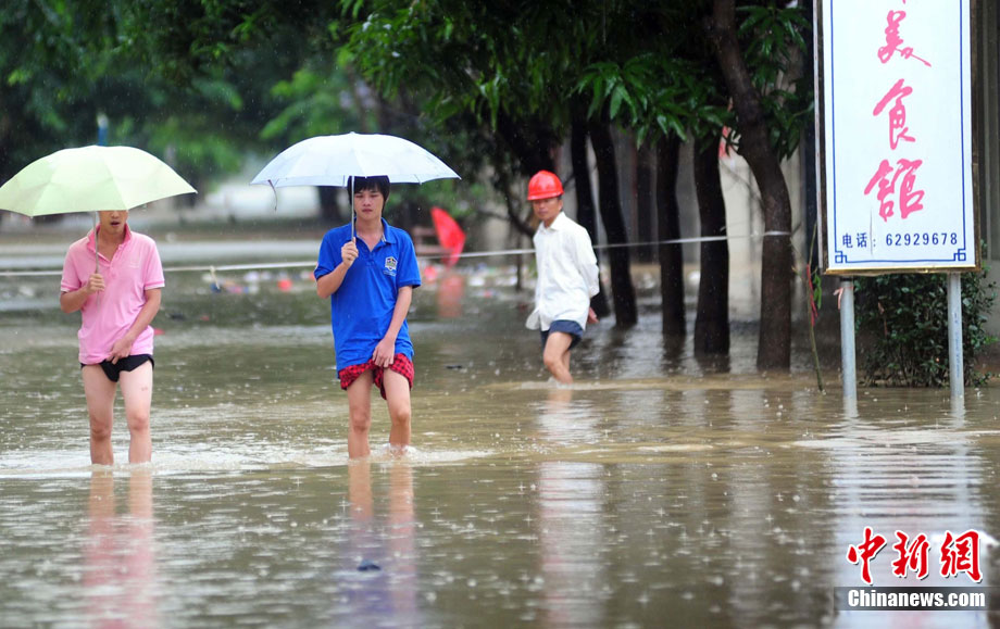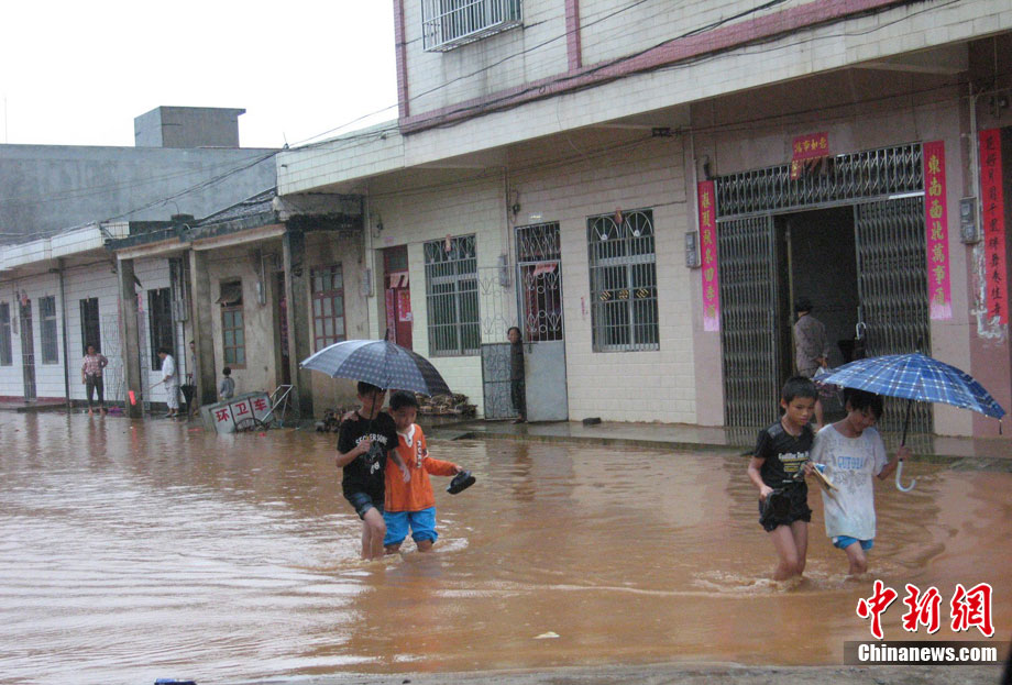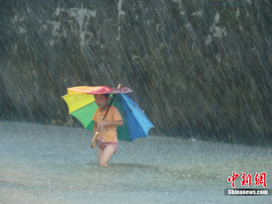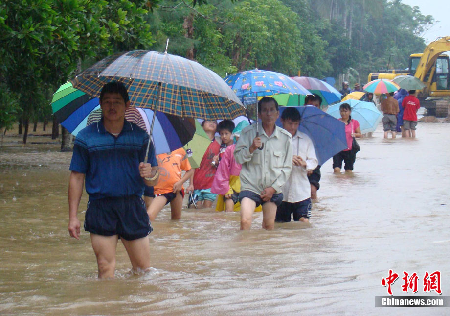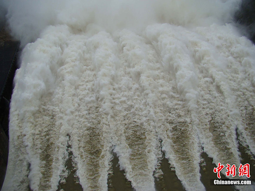 10月16日9時(shí),受持續(xù)強(qiáng)降雨影響,瓊海市牛路嶺水庫(kù)最高水位達(dá)105.16米,超過(guò)防洪限制水位105米,牛路嶺水庫(kù)水電站打開(kāi)7個(gè)閘門(mén),以每秒3000立方米流量泄洪到萬(wàn)泉河。當(dāng)日上午,瓊海市政府緊急將萬(wàn)泉河沿岸7鄉(xiāng)鎮(zhèn)群眾緊急轉(zhuǎn)移。中新社發(fā) 付美斌 攝