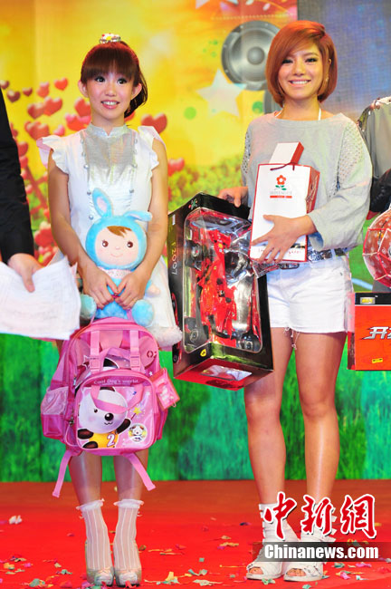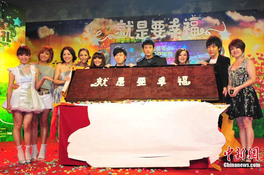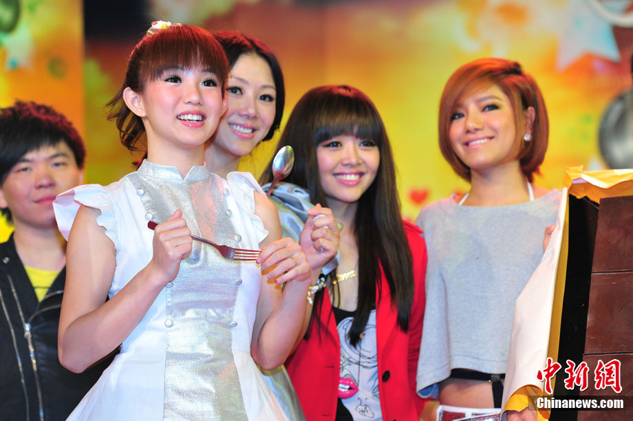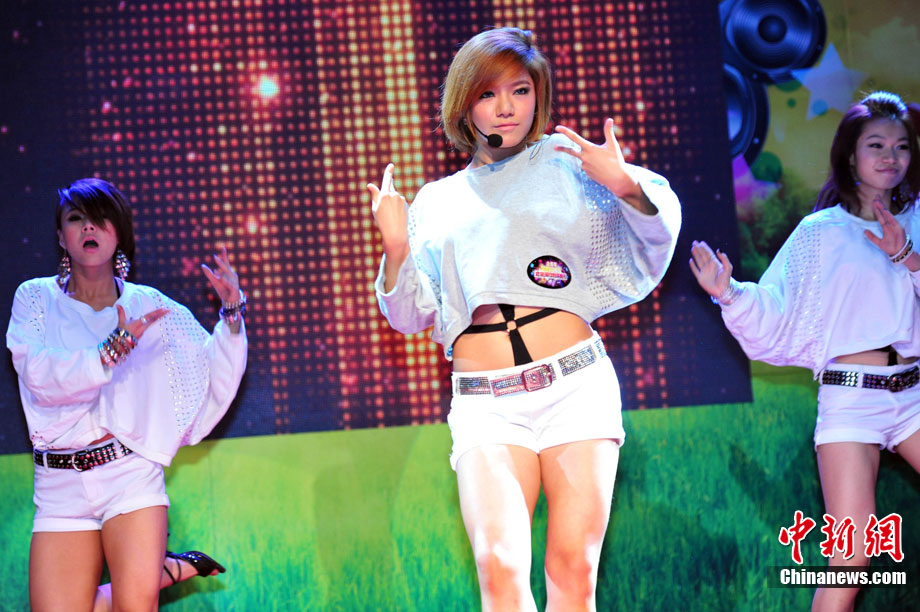 10月17日,2010年度北京流行音樂(lè)典禮歡唱會(huì)啟動(dòng)儀式在京舉行,宣告“中歌榜”年度盤(pán)點(diǎn)正式啟動(dòng)。江映蓉、臺(tái)灣“奶油甜心”郭書(shū)瑤、王箏、黃琦雯、常石磊等樂(lè)壇的新生力量到場(chǎng)助陣,共同品嘗一塊重達(dá)8公斤的巨型巧克力,巧克力上的“就是要幸!弊謽右彩潜灸甓鹊涠Y口號(hào)。圖為江映蓉在現(xiàn)場(chǎng)勁歌熱舞。中新社記者 李學(xué)仕 攝