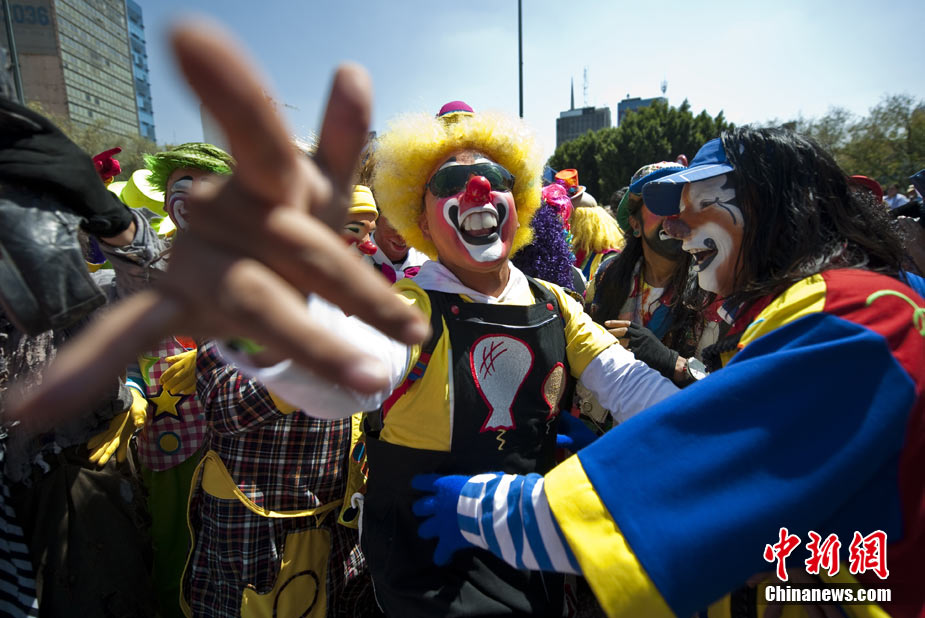 10月20日,數(shù)百名小丑聚集在墨西哥首都墨西哥城,參加在此舉行國(guó)際小丑公約大會(huì)。