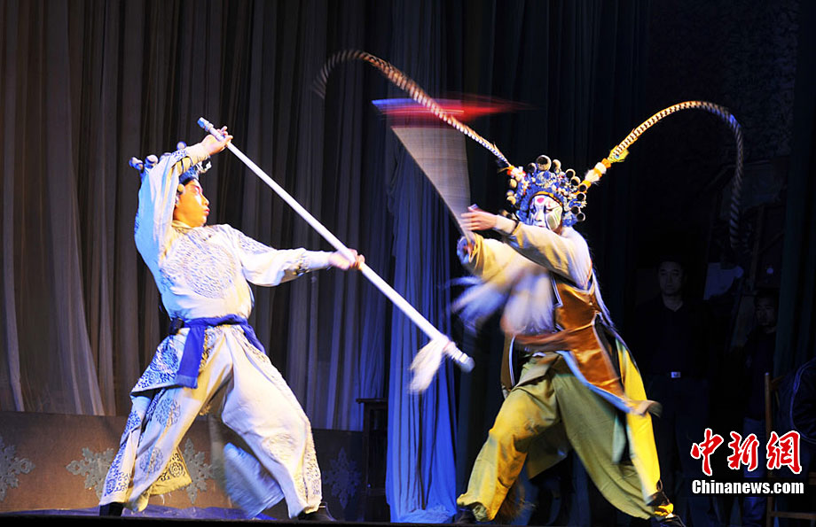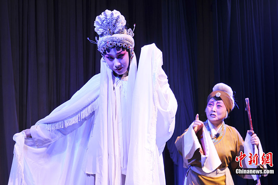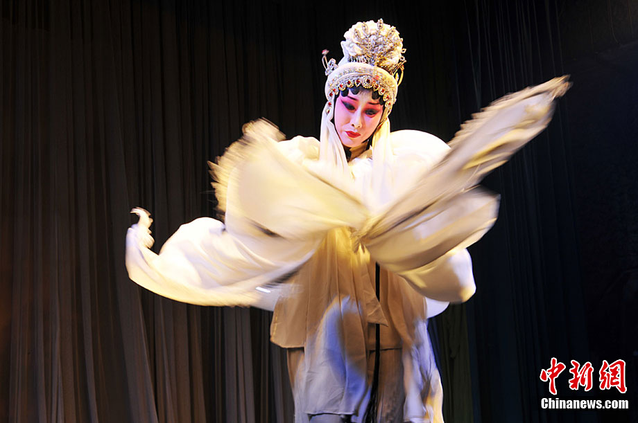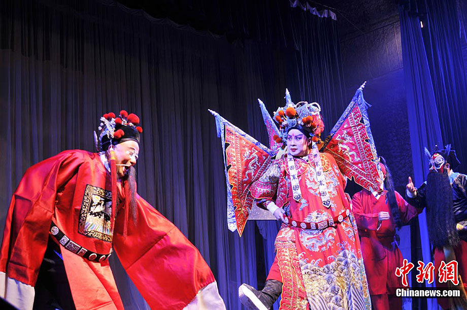 10月18日至22日,甘肅秦劇團(tuán)到基層為鄉(xiāng)下人唱“大戲”,演員們唱念做打演,招招真功夫給鄉(xiāng)親們送來(lái)了一場(chǎng)場(chǎng)戲曲大餐!度窝、《火焰駒》、《竇娥冤》等演出,一出出膾炙人口的傳統(tǒng)劇目風(fēng)格各異,精彩紛呈,鄉(xiāng)親們?cè)谝淮未蔚那楣?jié)跌宕中笑聲不止、掌聲不斷。秦腔又稱(chēng)亂彈,源于西秦腔,流行于中國(guó)西北的陜西、甘肅、青海、寧夏、新疆等地,又因其以棗木梆子為擊節(jié)樂(lè)器,所以又叫“梆子腔”,俗稱(chēng)“桄桄子”,經(jīng)國(guó)務(wù)院批準(zhǔn)列入第一批國(guó)家級(jí)非物質(zhì)文化遺產(chǎn)名錄。楊艷敏 攝