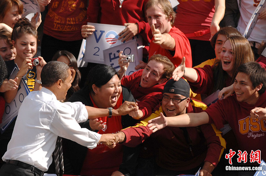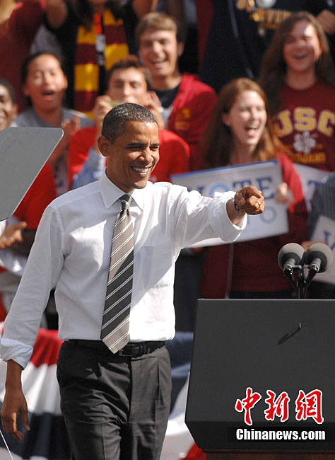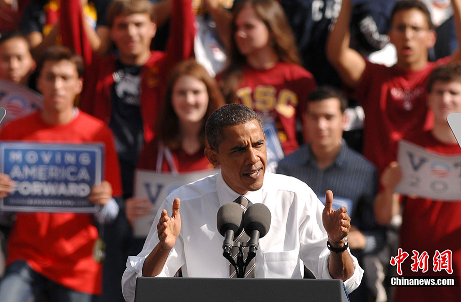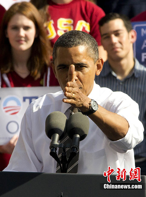 當?shù)貢r間10月22日,距離美國中期選舉投票日還有11天,正在美國西部為民主黨助選的奧巴馬總統(tǒng)又馬不停蹄地來到洛杉磯,面對上萬名支持者,他呼吁大家站出來為美國和加州把握正確方向。中新社發(fā) 張煒 攝
