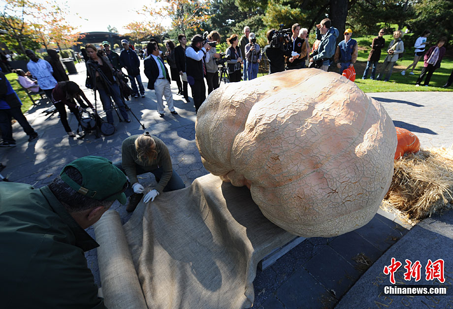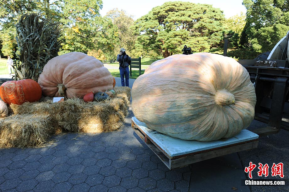 當(dāng)?shù)貢r(shí)間10月21日,世界上大個(gè)頭南瓜在美國(guó)紐約植物園里集體亮相展示,其中包括剛打破世界紀(jì)錄重達(dá)821.2公斤的“新科狀元”。
