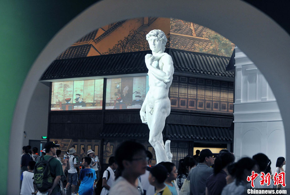上海世博會的城市足跡館被譽為“世博園最值錢”的場館。古巴比倫王國的神門、特洛伊古戰(zhàn)場、莫高窟神秘壁畫、故宮及外國皇家珍寶、柏拉圖、達芬奇、卓別林和大衛(wèi)雕塑等等,這里薈萃著向世界各著名博物館借來的大量珍貴文物和鎮(zhèn)館之寶300多件,濃縮展示上下五千年人類城市發(fā)展史的時空畫卷,堪稱世博會史上的奇跡。專家感嘆,“僅僅把文物看一遍,就值世博會的門票!敝行律缬浾 賈國榮 攝