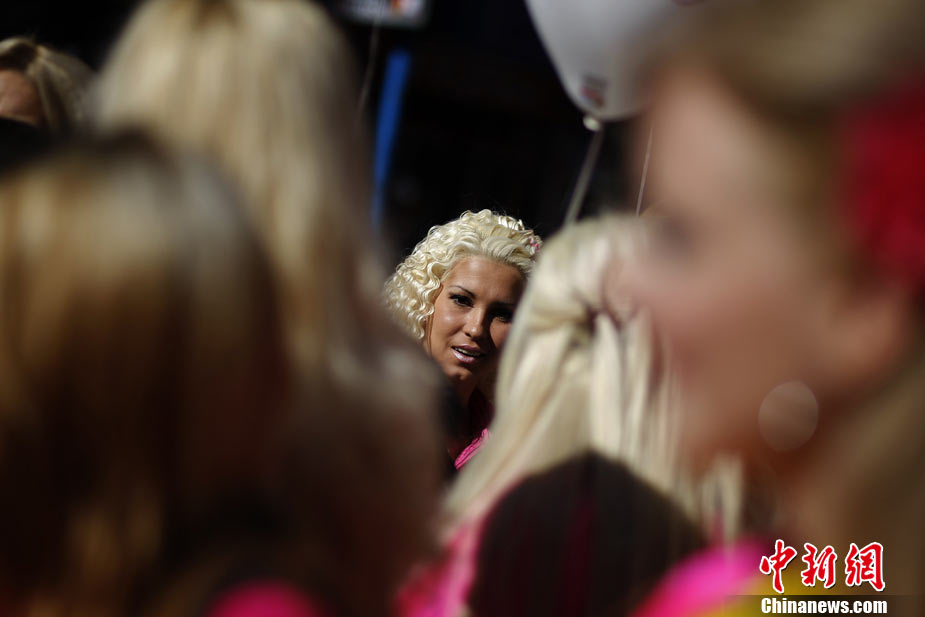 近日,在保加利亞首都索非亞舉行了金發(fā)女郎大游行,眾多美女在街頭大秀嫵媚身材。