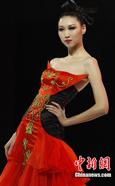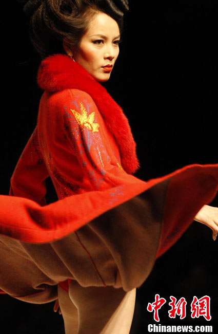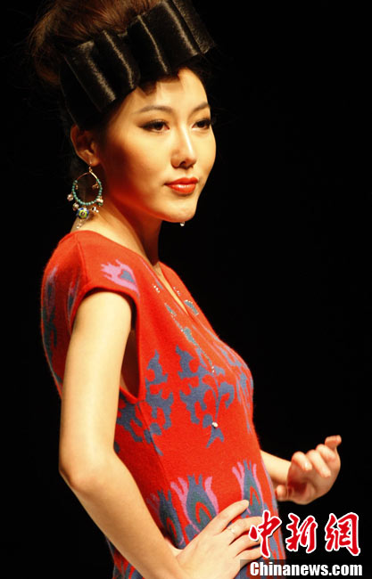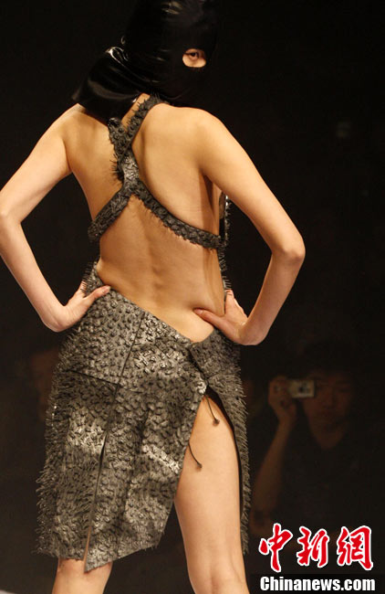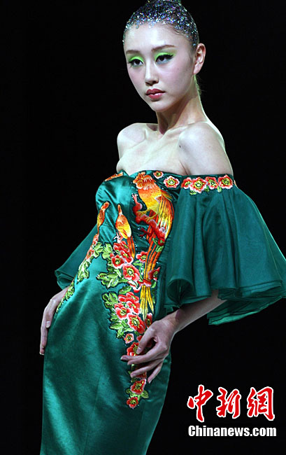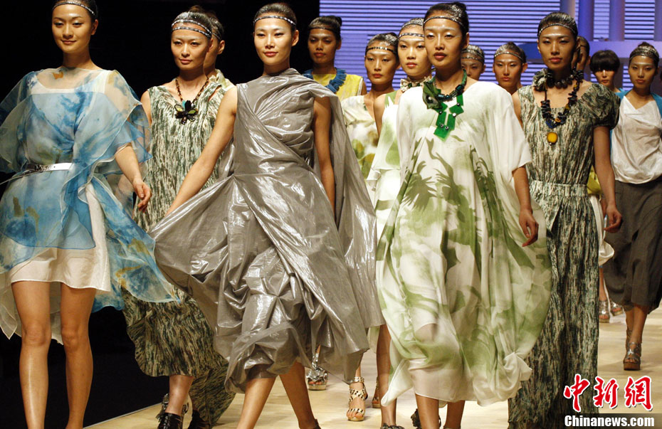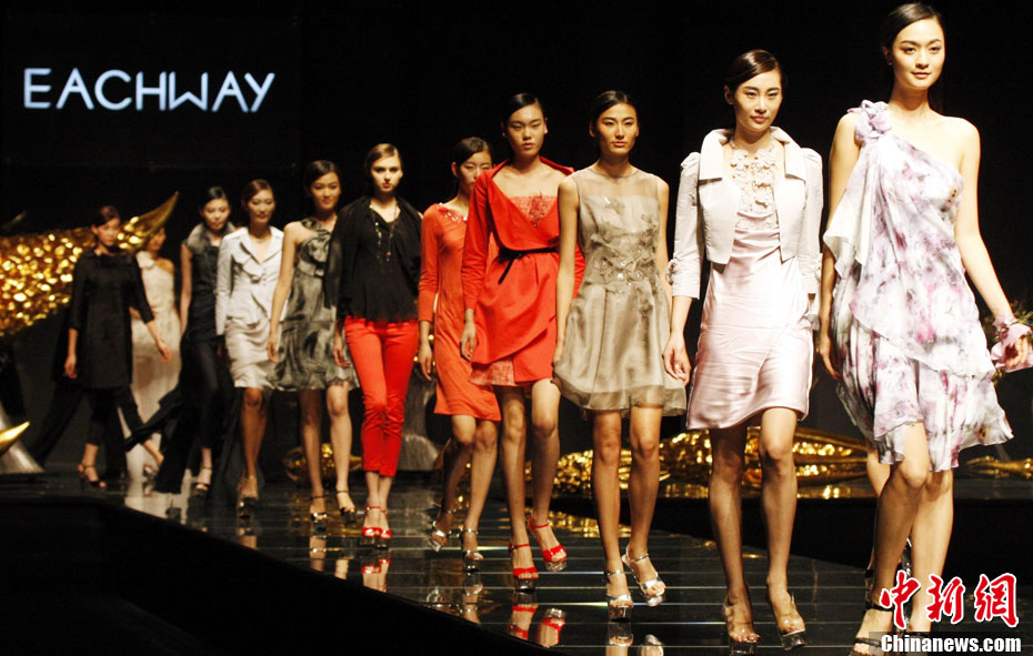 10月26日晚,正在北京舉行的中國(guó)國(guó)際時(shí)裝周上演EACHWAY·趙卉洲2011春夏時(shí)裝發(fā)布會(huì),該作品風(fēng)格簡(jiǎn)約自然、清新優(yōu)雅、大氣內(nèi)斂,贏得眾多職場(chǎng)女性的青睞。2011春夏系列包含三大主題:“深海精靈”(藍(lán)綠色系)、“夢(mèng)游幻境”(粉紫色系)、“雙色游戲”(米咖色系),圍繞摩登柔美和經(jīng)典的花卉印花兩大元素展開。中新社記者 錢興強(qiáng) 攝