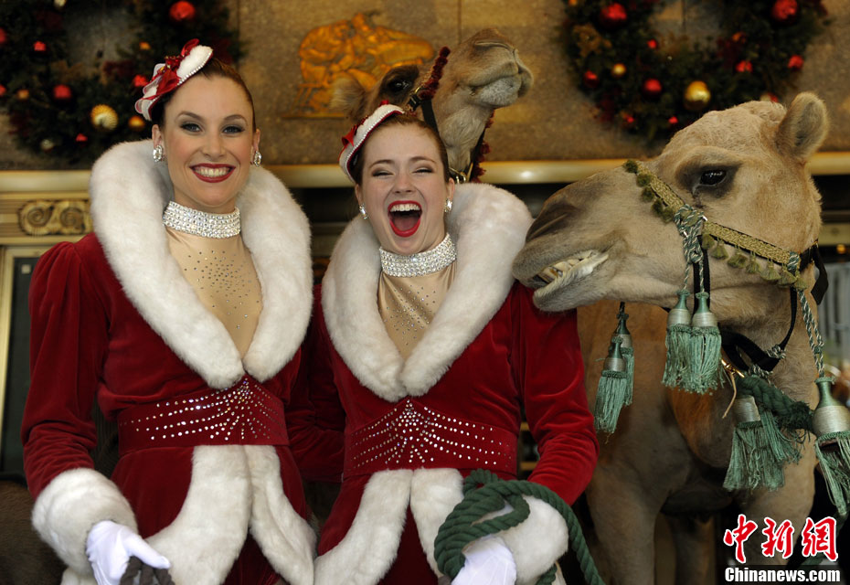 10月26日,美國“火箭女郎”舞蹈團(tuán)攜駱駝、綿羊等動物一起出現(xiàn)在紐約無線電城前,為即將到來的圣誕大匯演造勢。今年的無線電城圣誕大匯演將于11月5日至12月30日舉行。
