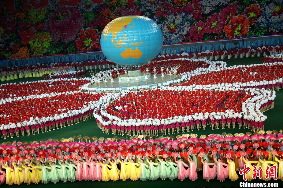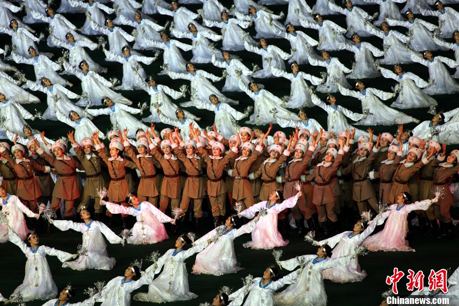 平壤精彩上演大型團體操《阿里郎》