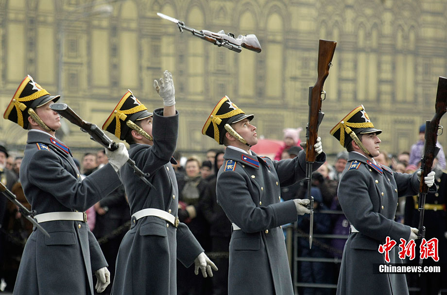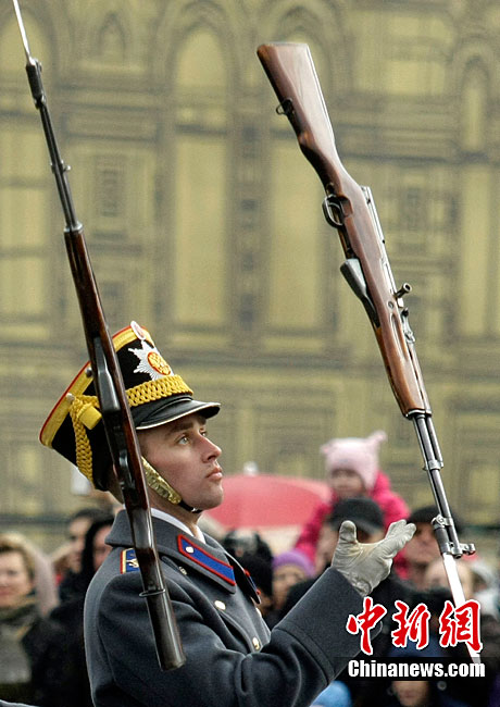 當?shù)貢r間10月30日,俄羅斯首都莫斯科的克里姆林宮前衛(wèi)兵舉行了隆重的換崗儀式。圖為衛(wèi)兵在換崗儀式上舉行花槍表演。