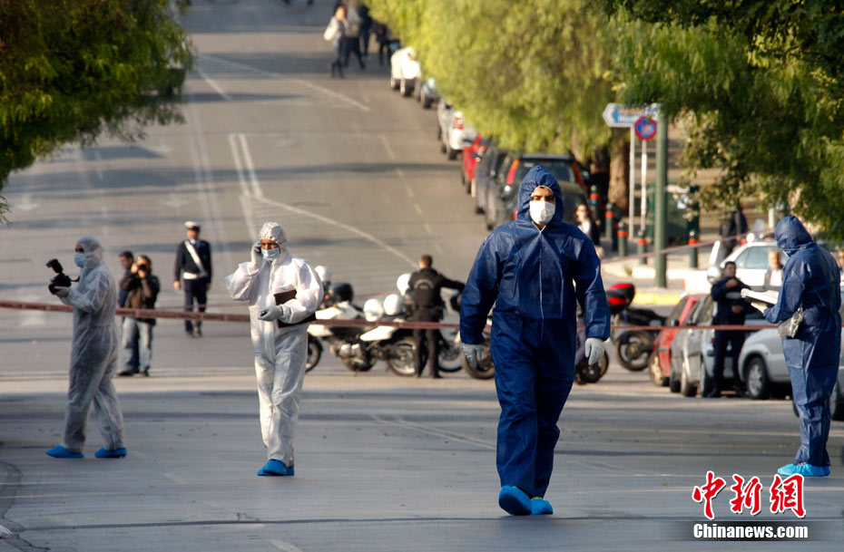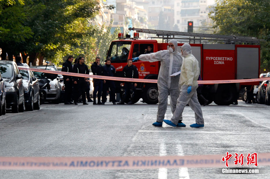 希臘警方1日下午宣布,當(dāng)日在雅典市中心發(fā)現(xiàn)的多個(gè)郵包炸彈中,其中一個(gè)是寄給法國總統(tǒng)薩科齊的。當(dāng)天早些時(shí)候,一個(gè)郵包炸彈在雅典市中心的一家郵局爆炸,一名女工作人員手部受傷。包裹接收人為墨西哥駐希臘使館。 圖為爆炸事件發(fā)生后,希臘警方封鎖了發(fā)生爆炸事件的郵局及周邊地區(qū)。
