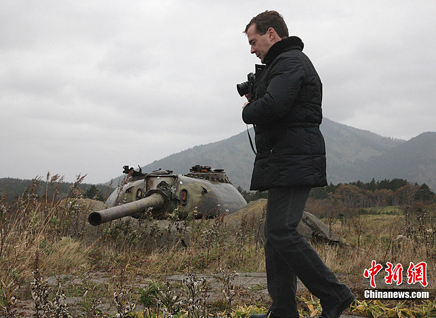 11月1日上午,俄羅斯總統(tǒng)梅德韋杰夫登上南千島群島(日本稱北方四島)的國后島。這是俄羅斯國家元首首次視察俄日之間存在爭議的島嶼。
