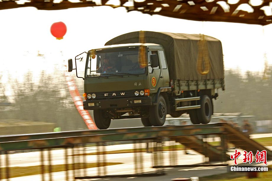 10月31日,空軍成立61年來規(guī)模最大的后勤專業(yè)技能大比武在沈陽落幕。在3天的時(shí)間里,784名后勤精英在49個(gè)課目中進(jìn)行比拼。參加這次大比武的人員來自空軍直屬及所轄7個(gè)軍區(qū)空軍、空降兵部隊(duì)的各級(jí)后勤系統(tǒng)。今年3月以來,空軍以《空軍后勤訓(xùn)練和考核大綱》等為基本依據(jù),在空軍后勤現(xiàn)有的軍需、油料、衛(wèi)生、軍事交通、機(jī)場(chǎng)營房等7個(gè)專業(yè)中逐級(jí)進(jìn)行全員選拔。七大專業(yè)既包括輕武器分解結(jié)合與實(shí)彈射擊、炊事、車輛駕駛等軍隊(duì)通用訓(xùn)練課目,也包括輸油管線搶修、機(jī)場(chǎng)搶修、獵鷹驅(qū)鳥和獵槍打靶等具有濃厚空軍色彩的課目。圖為駕駛員選手比試通過高架橋。譚超 攝 圖片來源:CNSPHOTO