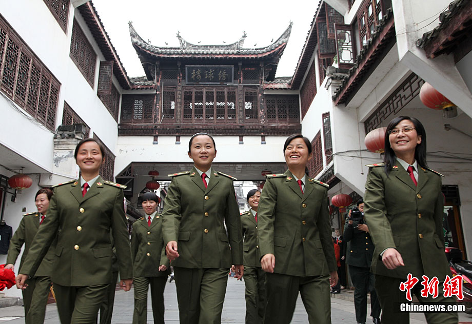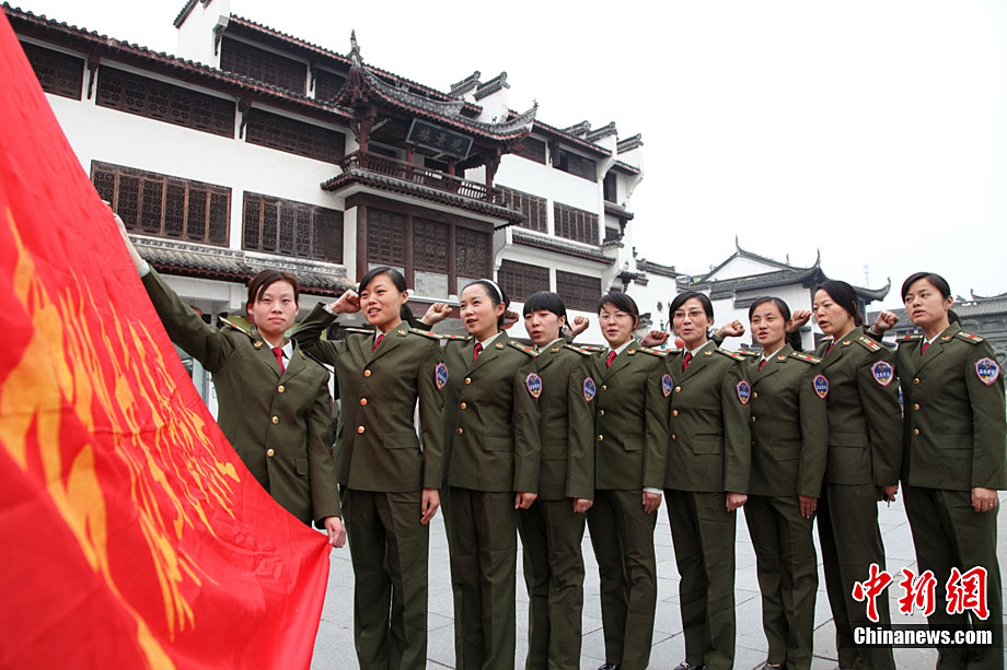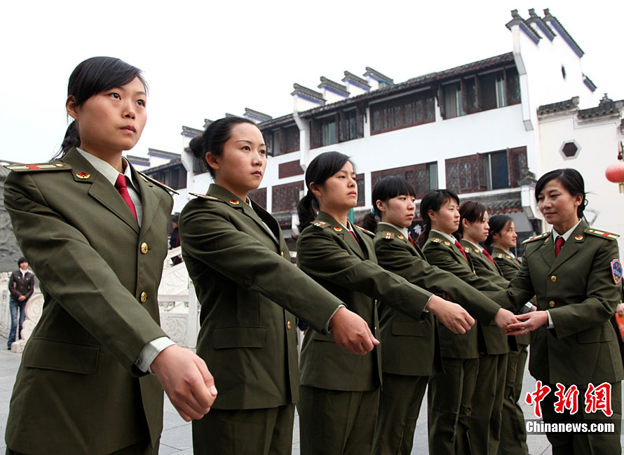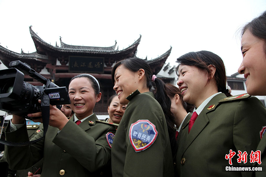 11月1日,安徽黃山歙縣古徽州女子民兵連的女民兵在訓(xùn)練。歙縣古徽州女子民兵連是安徽省唯一一支女子民兵連,由100人組成,百分之百的大專以上學(xué)歷、百分之百的黨團(tuán)員。去年3月8日成立以來(lái),為歙縣古城的社會(huì)穩(wěn)定和各種搶險(xiǎn)做出了卓有貢獻(xiàn)。瞧,她們的英姿多瀟灑。吳建平 攝