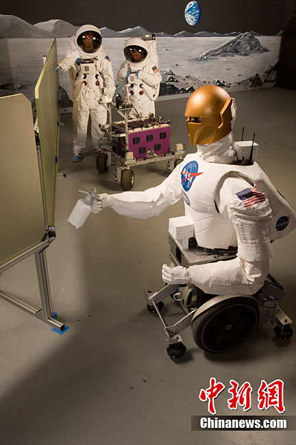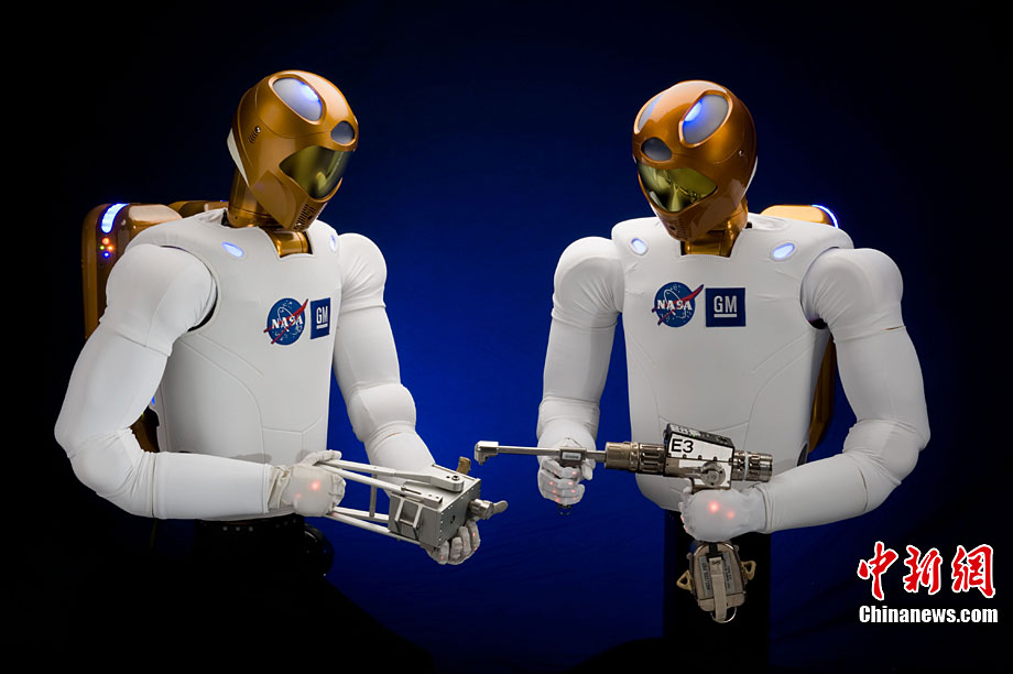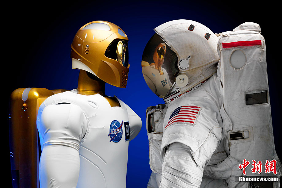 全球首個(gè)太空機(jī)器人(左)定于11月3日跟隨美國“發(fā)現(xiàn)”號(hào)航天飛機(jī)前往國際空間站,在那里度過自己的“一生”,它將在國際空間站完成一系列測(cè)試工作。據(jù)機(jī)器人設(shè)計(jì)者表示,它將在國際空間站完成一系列測(cè)試工作,但它的“后代”或許可以承擔(dān)太空行走、外星探險(xiǎn)等更加復(fù)雜、危險(xiǎn)的任務(wù)。
