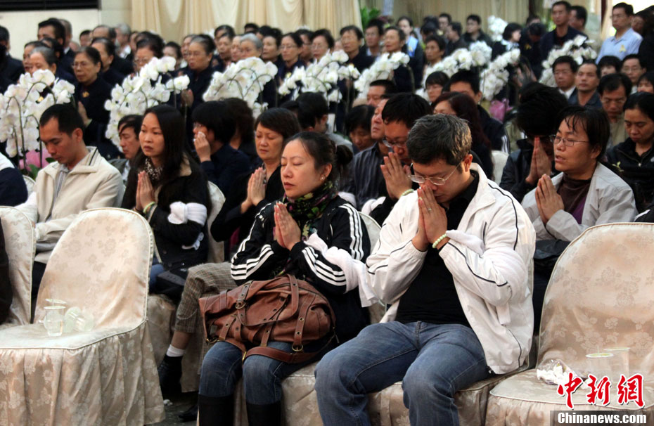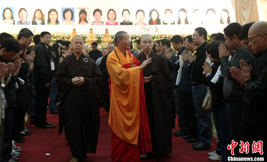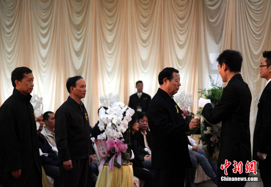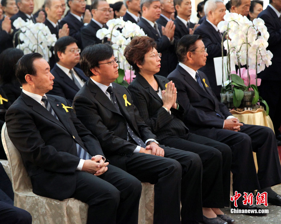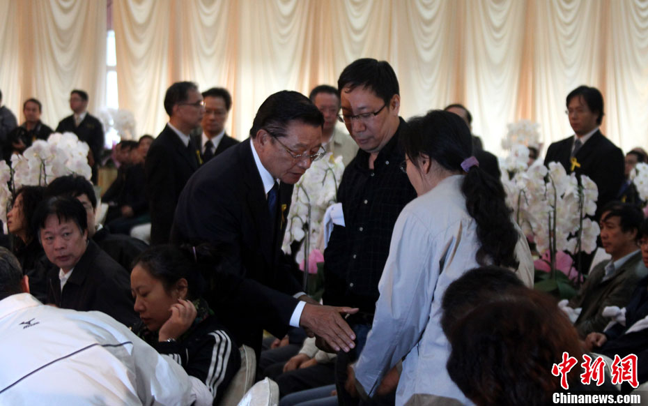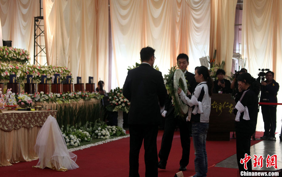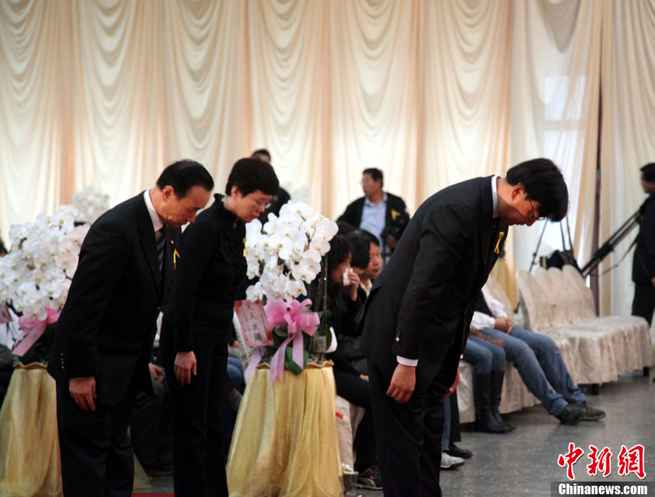 11月4日,20名在臺灣蘇花公路罹難的大陸旅客家祭公祭儀式今天下午在臺北舉行。圖為臺灣海峽兩岸觀光旅游協(xié)會會長賴瑟珍率臺旅會人員向罹難的大陸游客致哀。陳立宇 攝